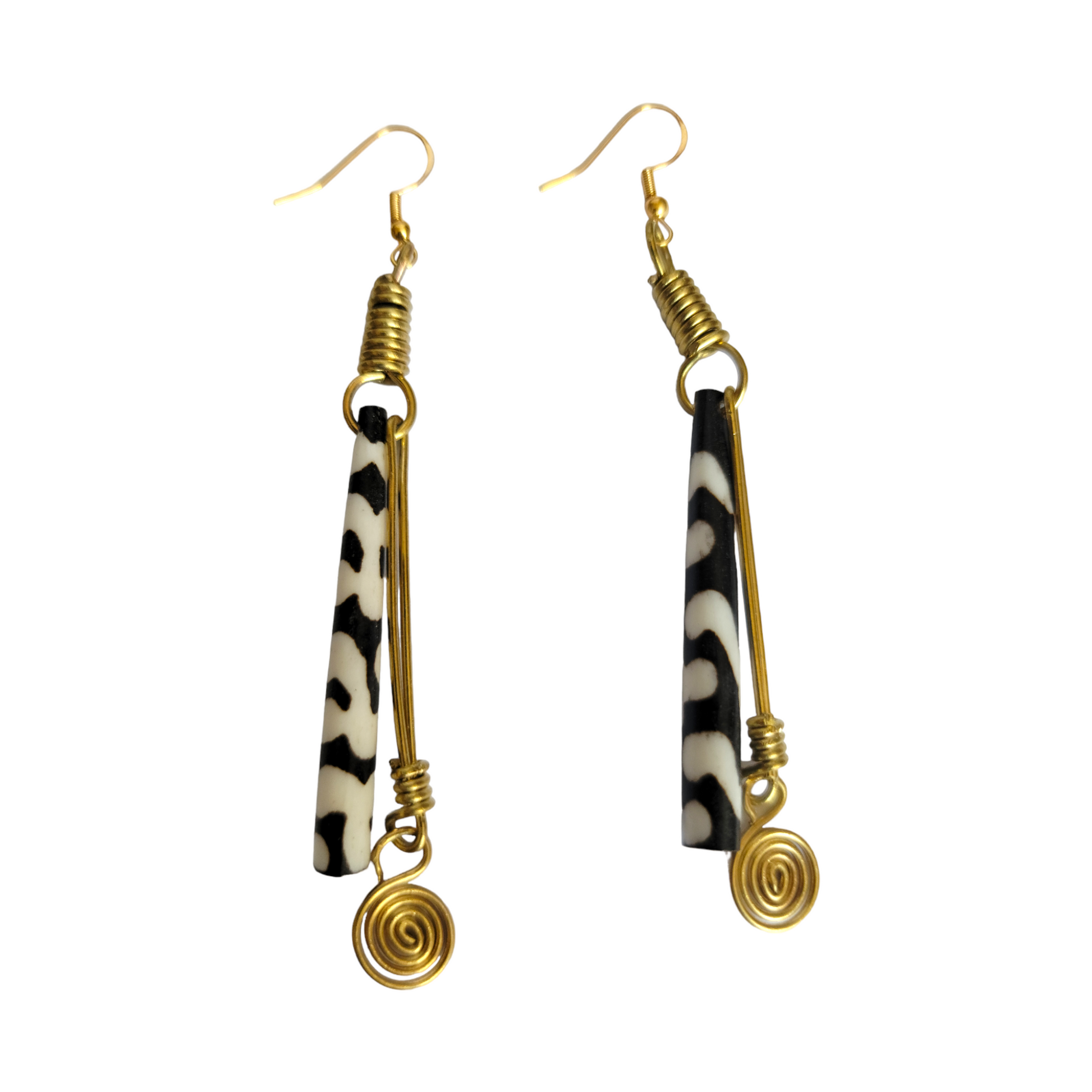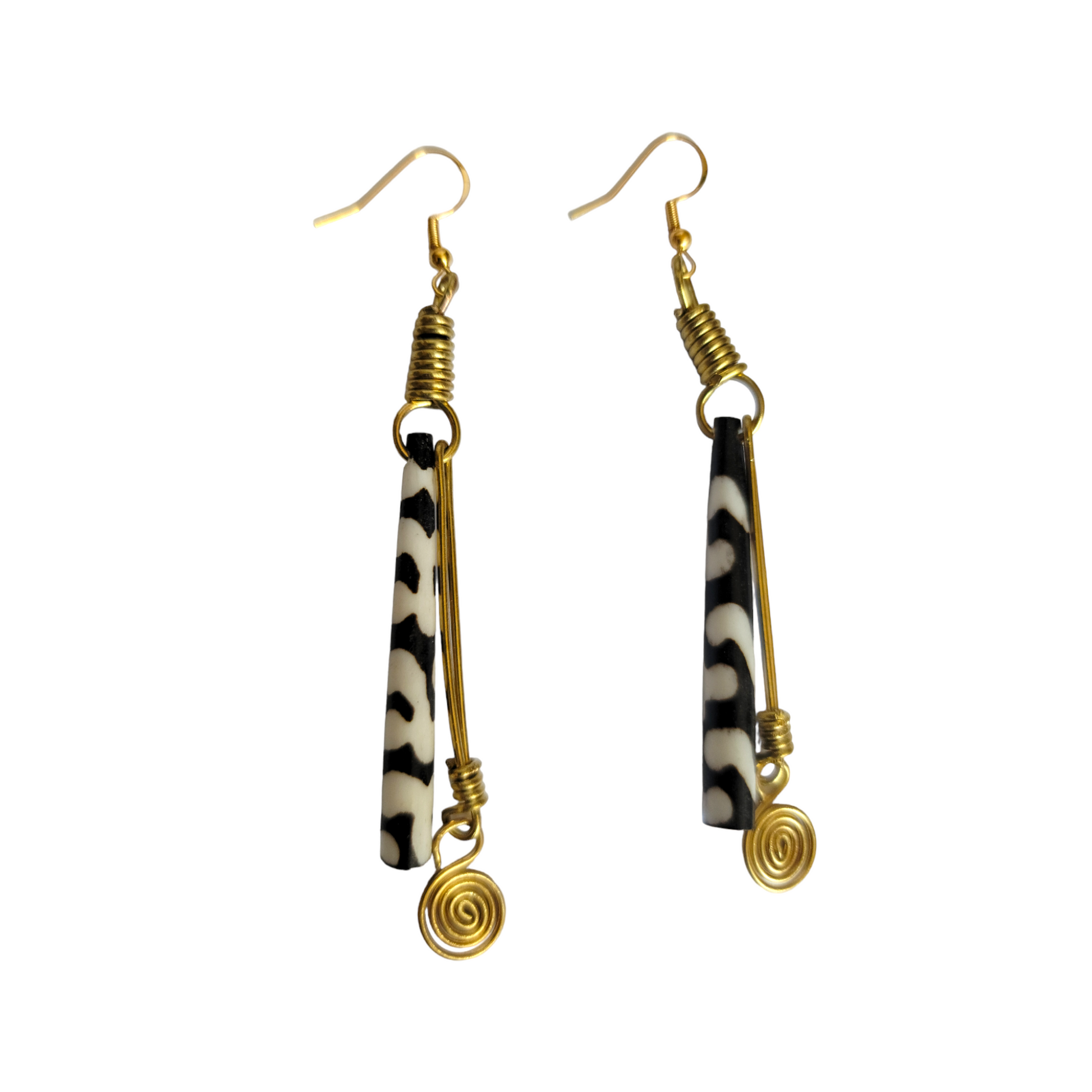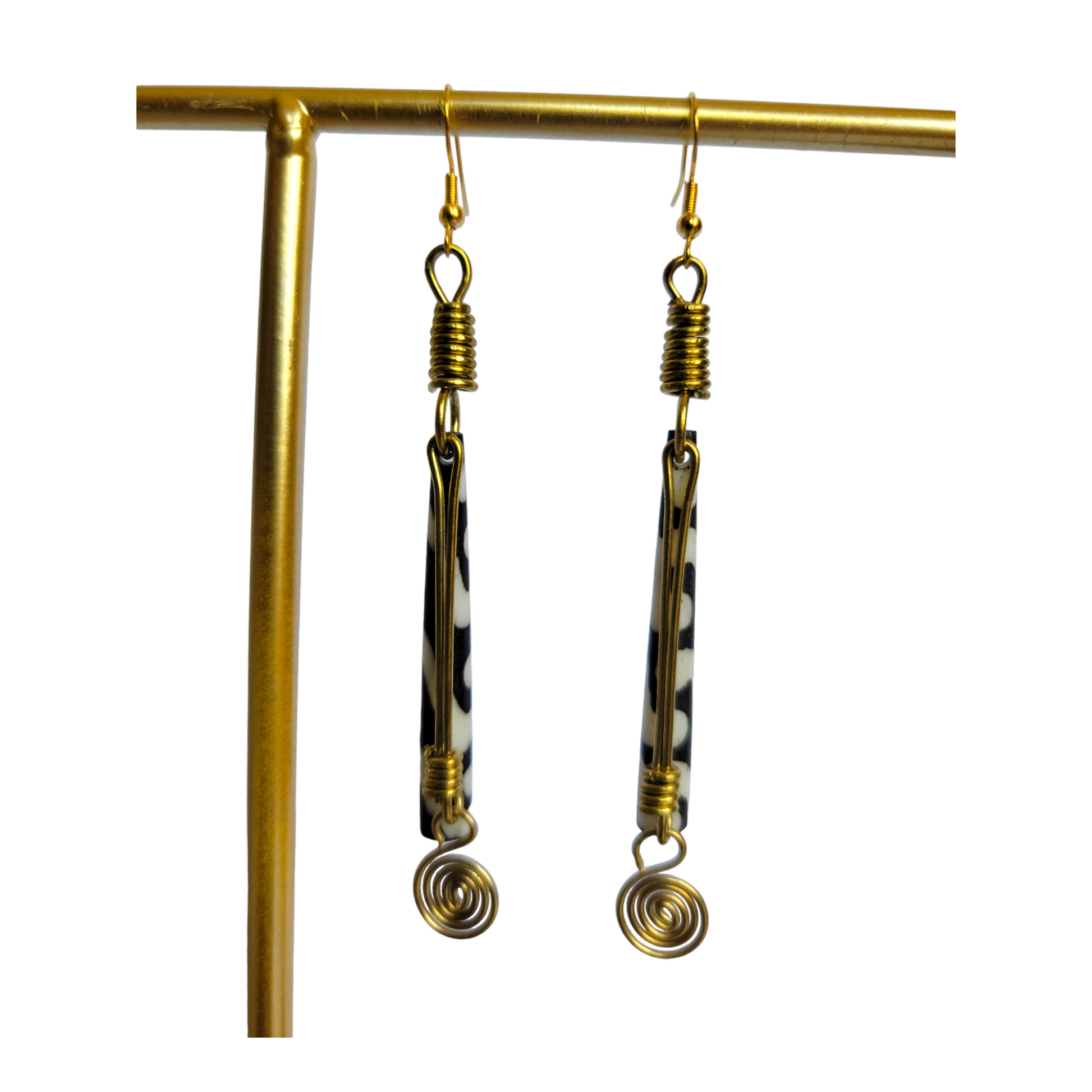 Black & White Bone & Brass Earrings