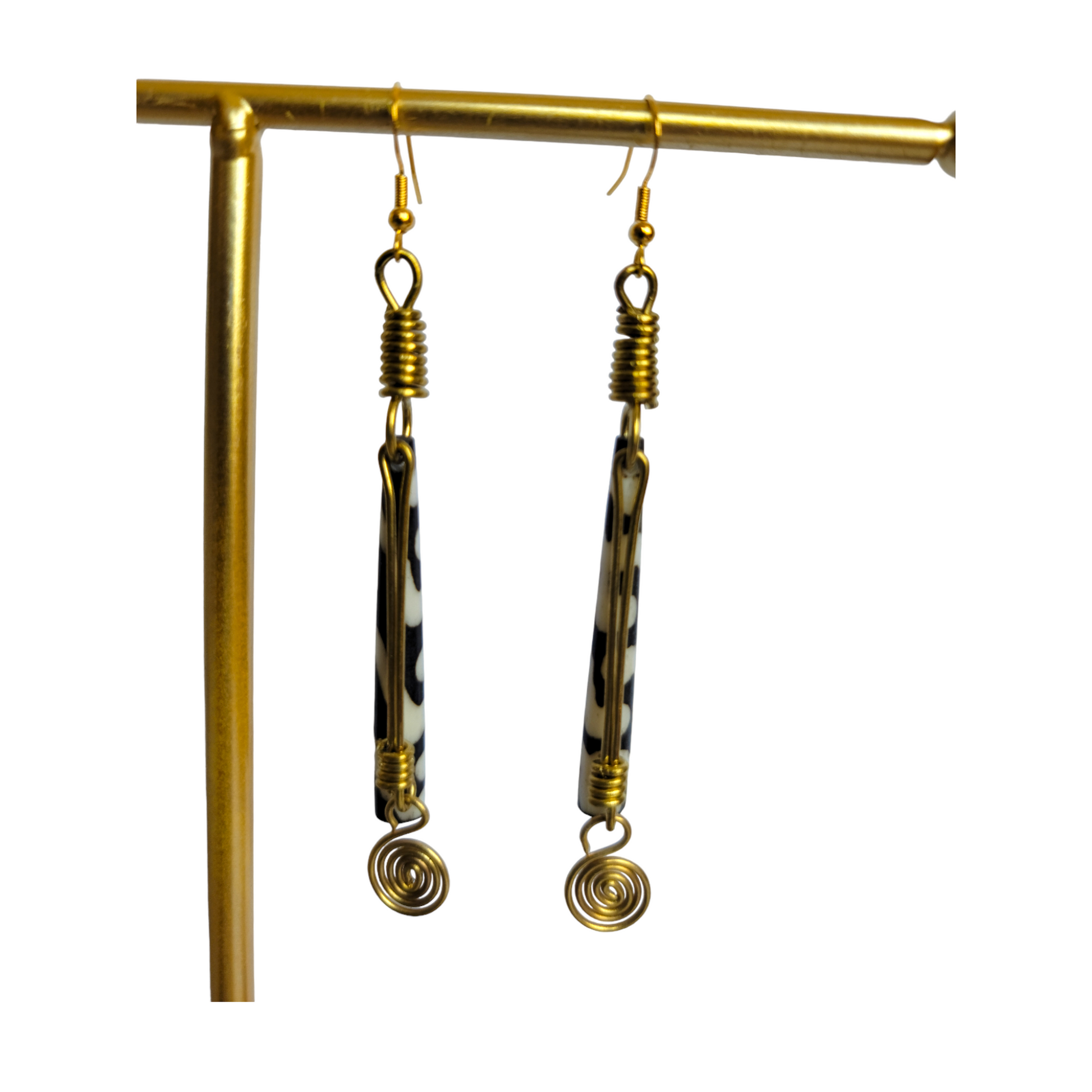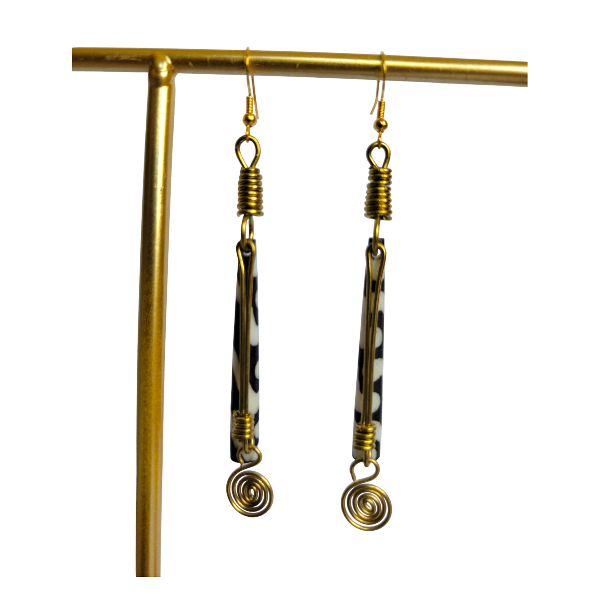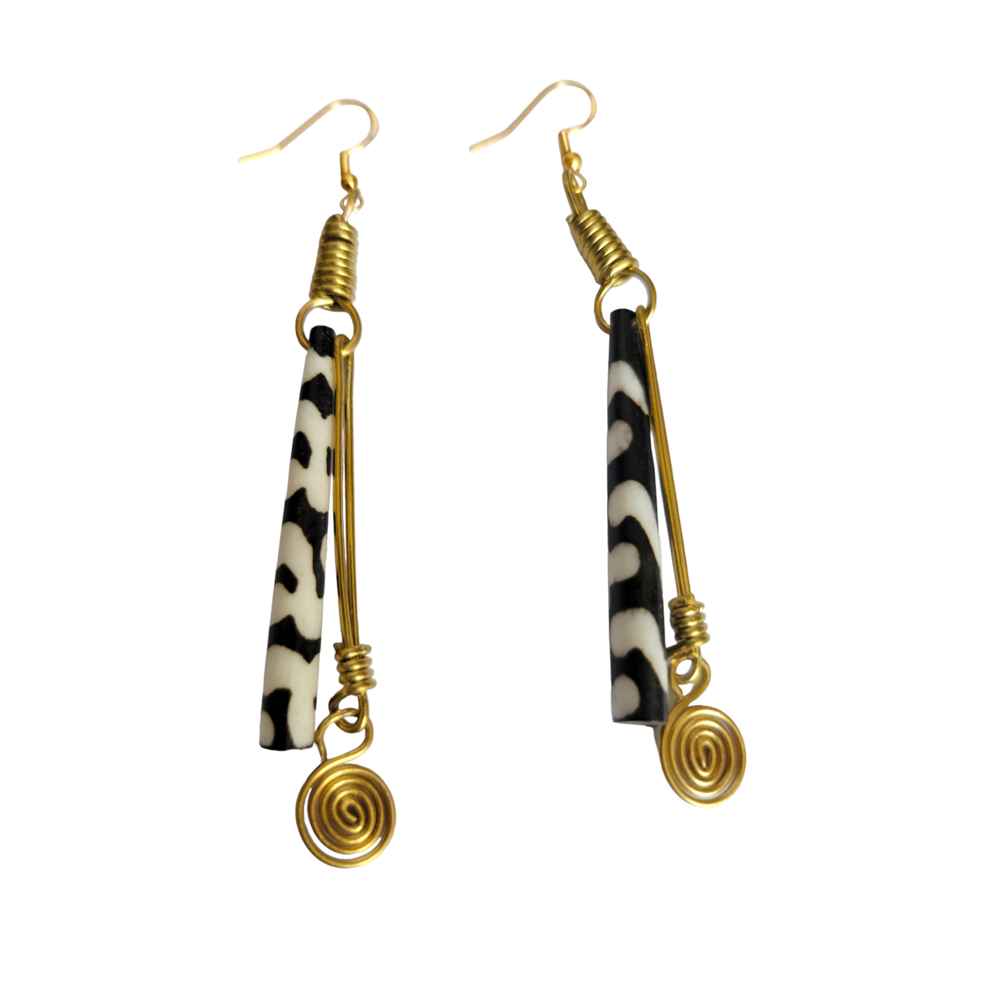 Black & White Bone & Brass Earrings