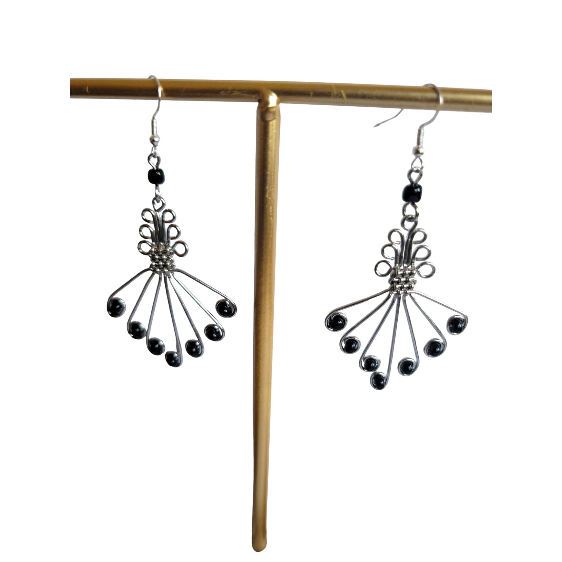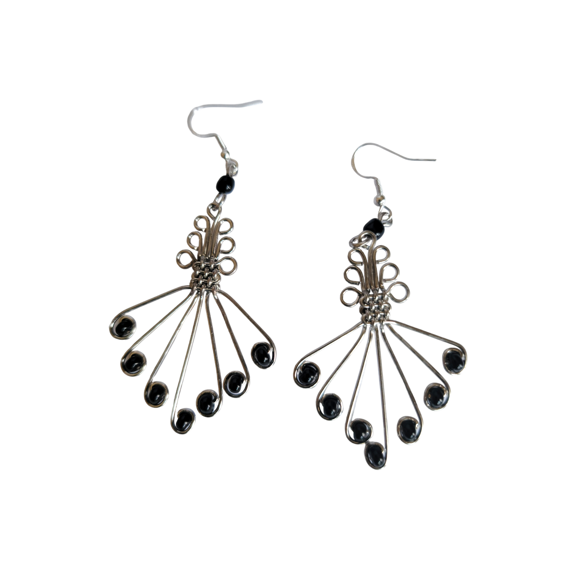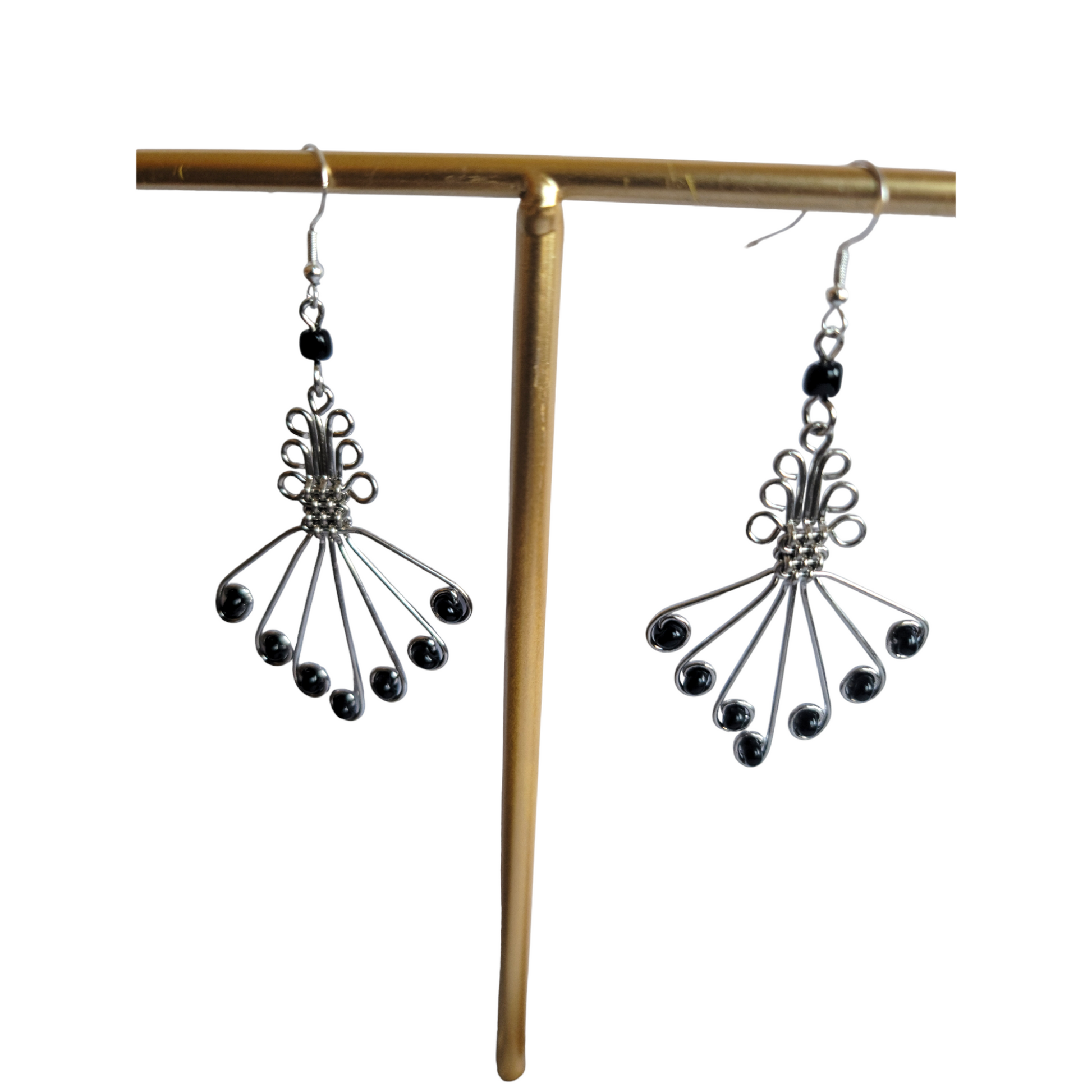 Beautiful Stainless Steel Wire Earrings W/ Black Beads