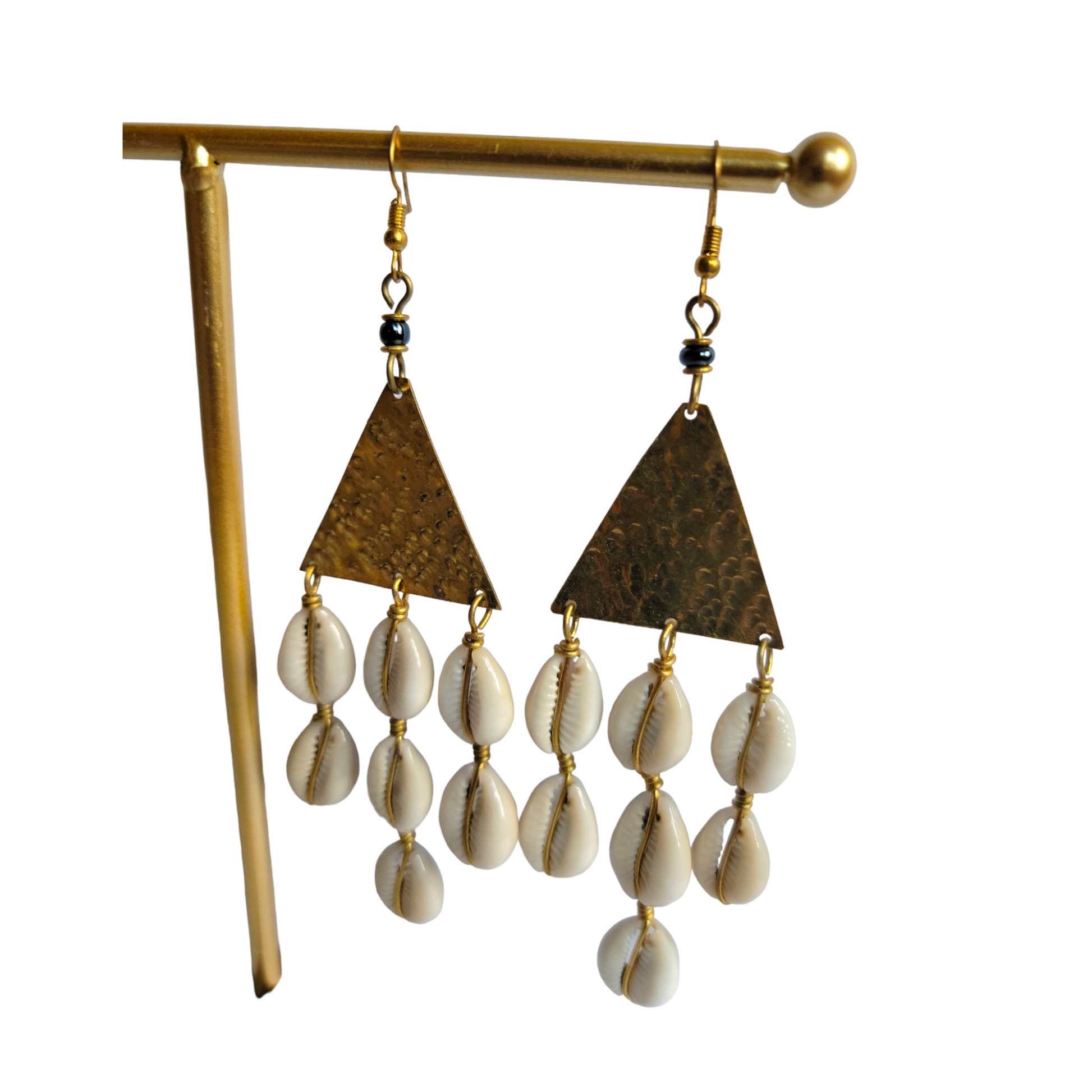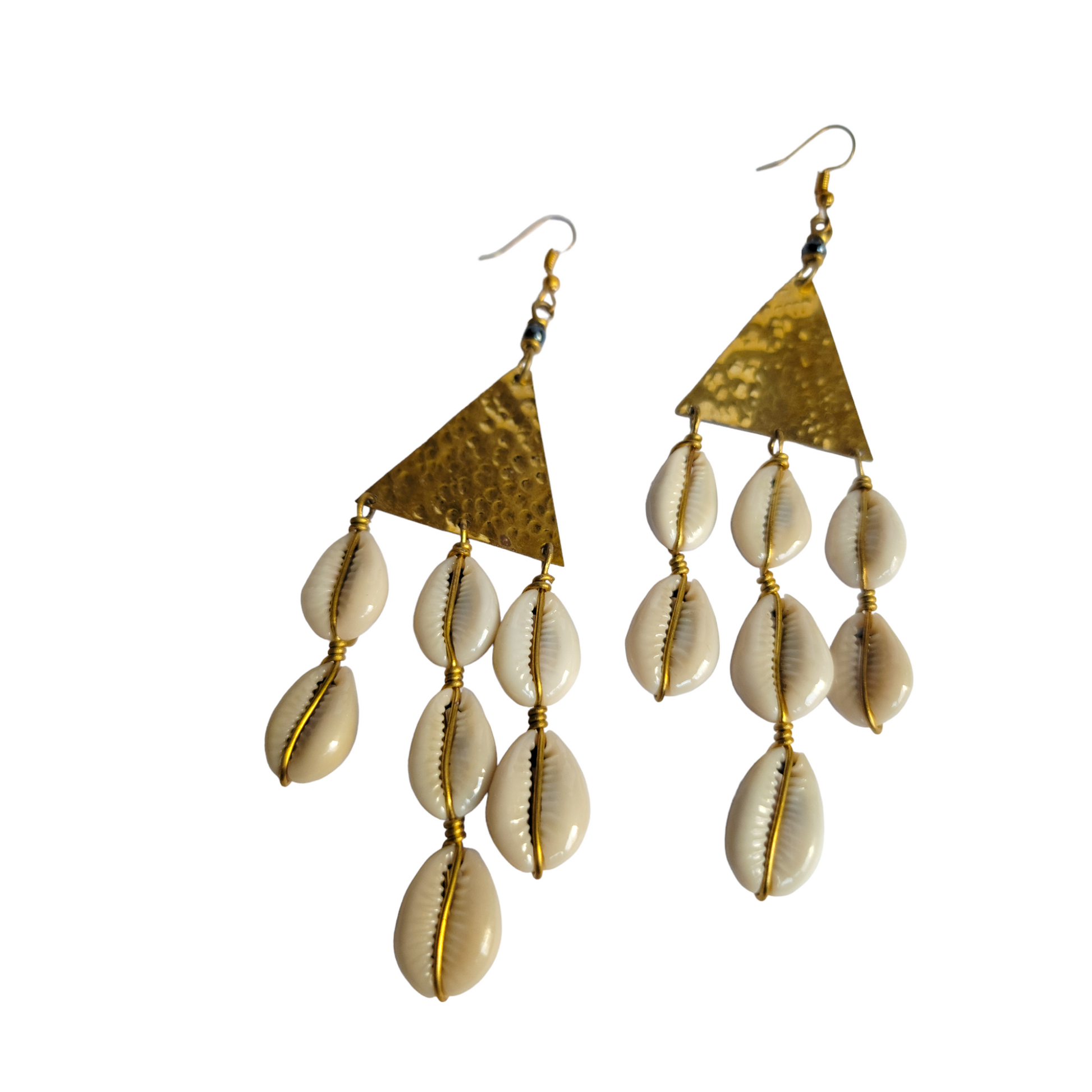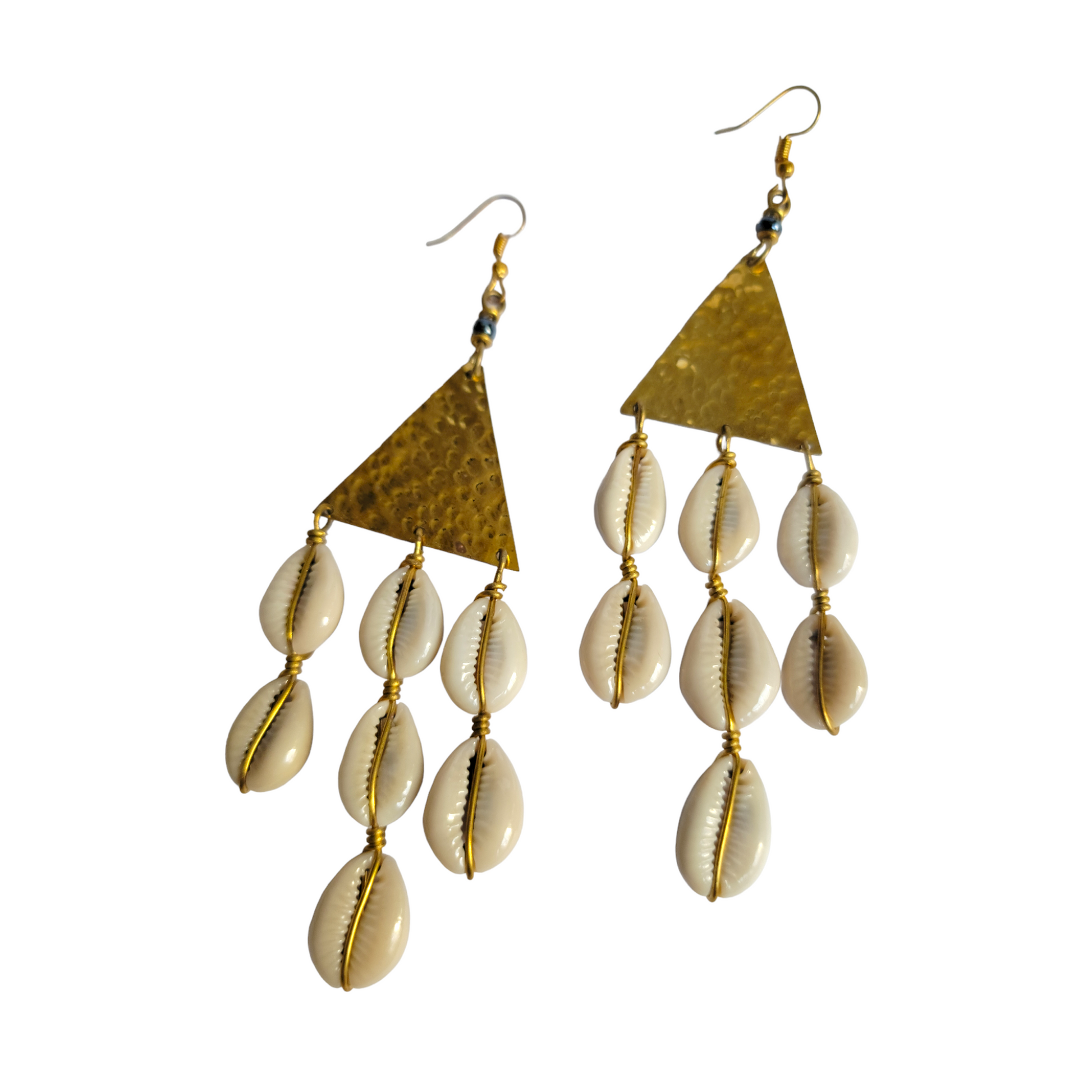 Brass Triangle with 3 Cowrie Strands