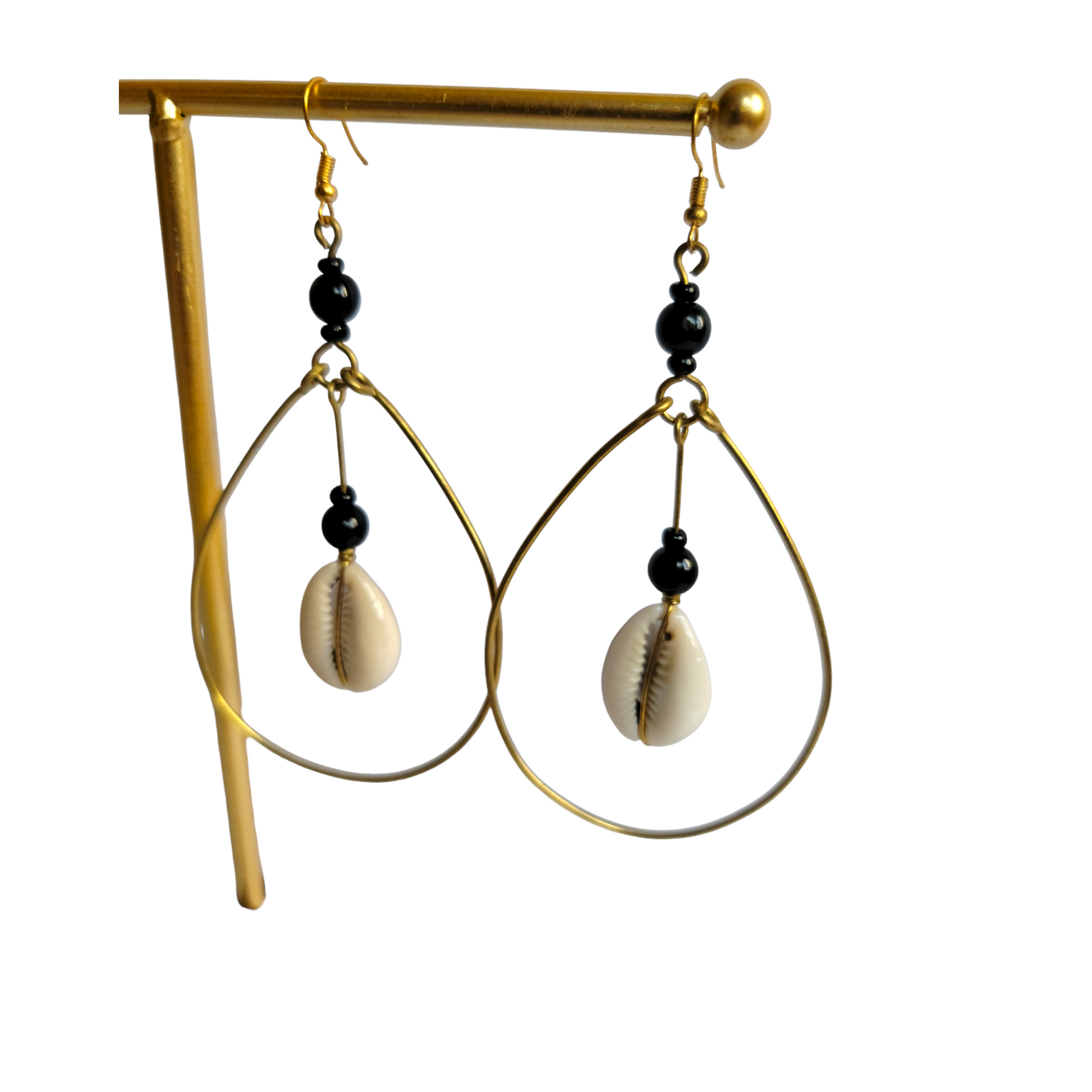 Cowrie Shell, Beads and Brass Hoop Earrings