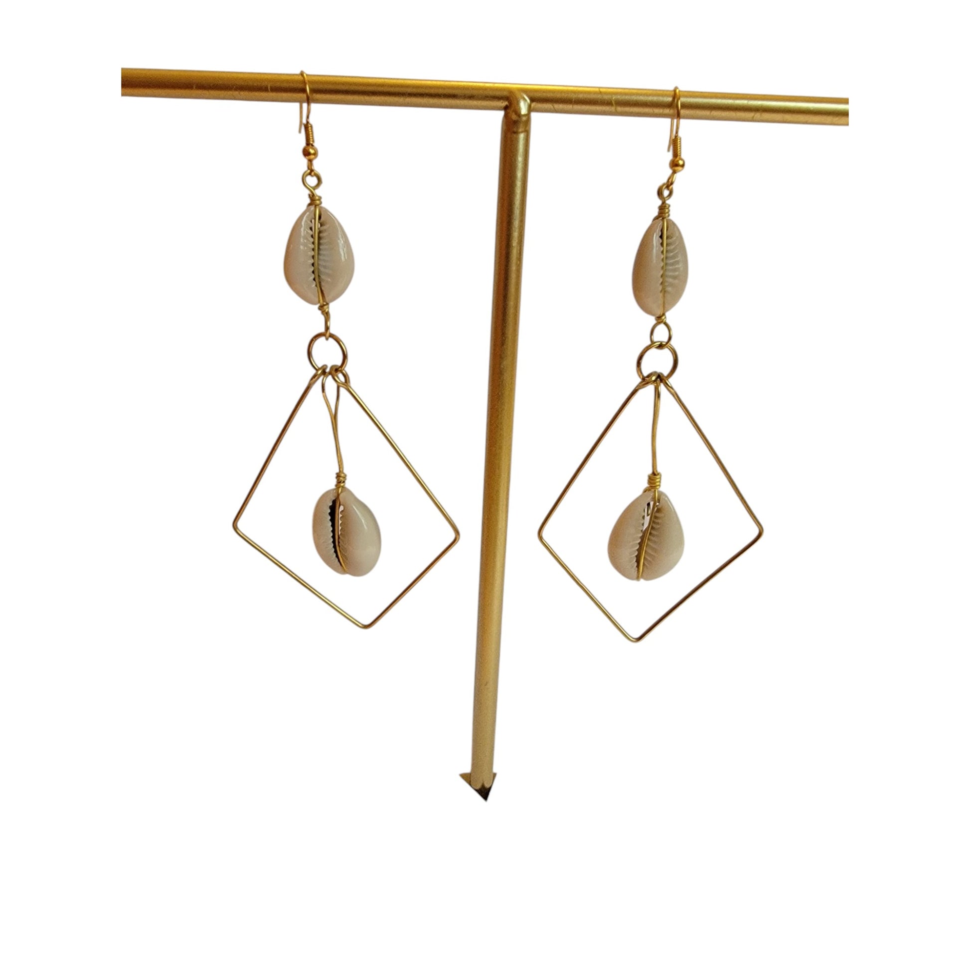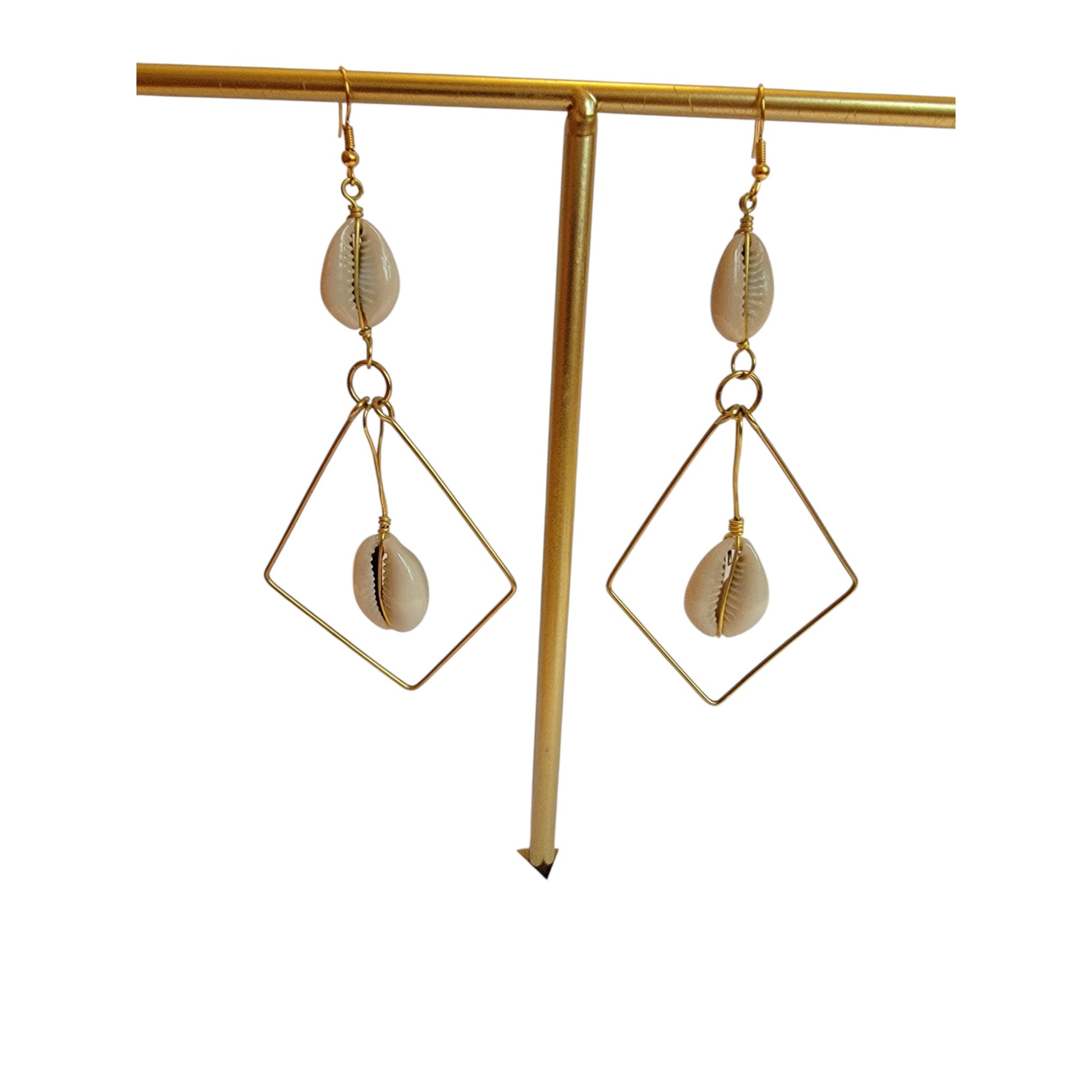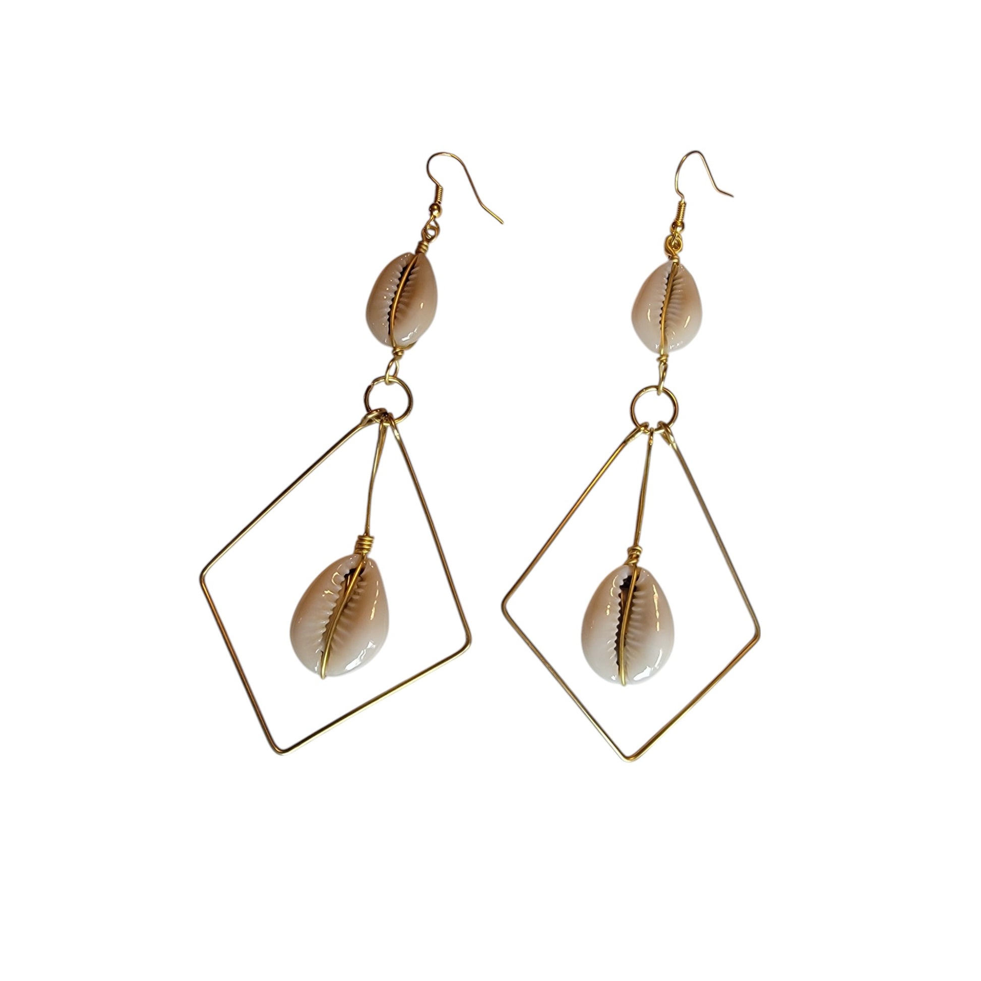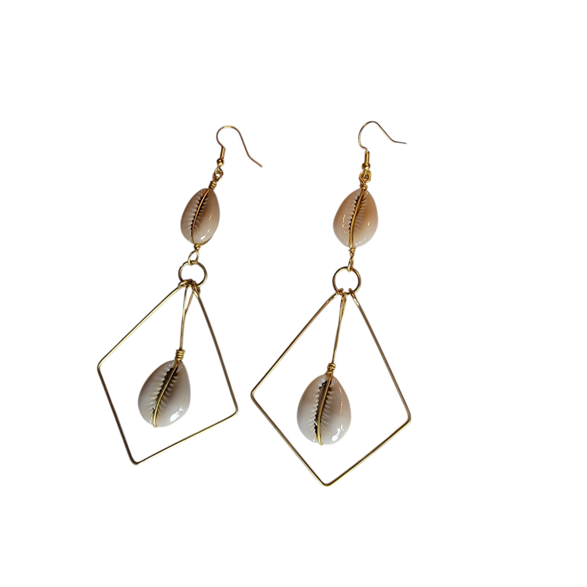 Diamond Shaped Brass W/ 2 Cowrie Shells