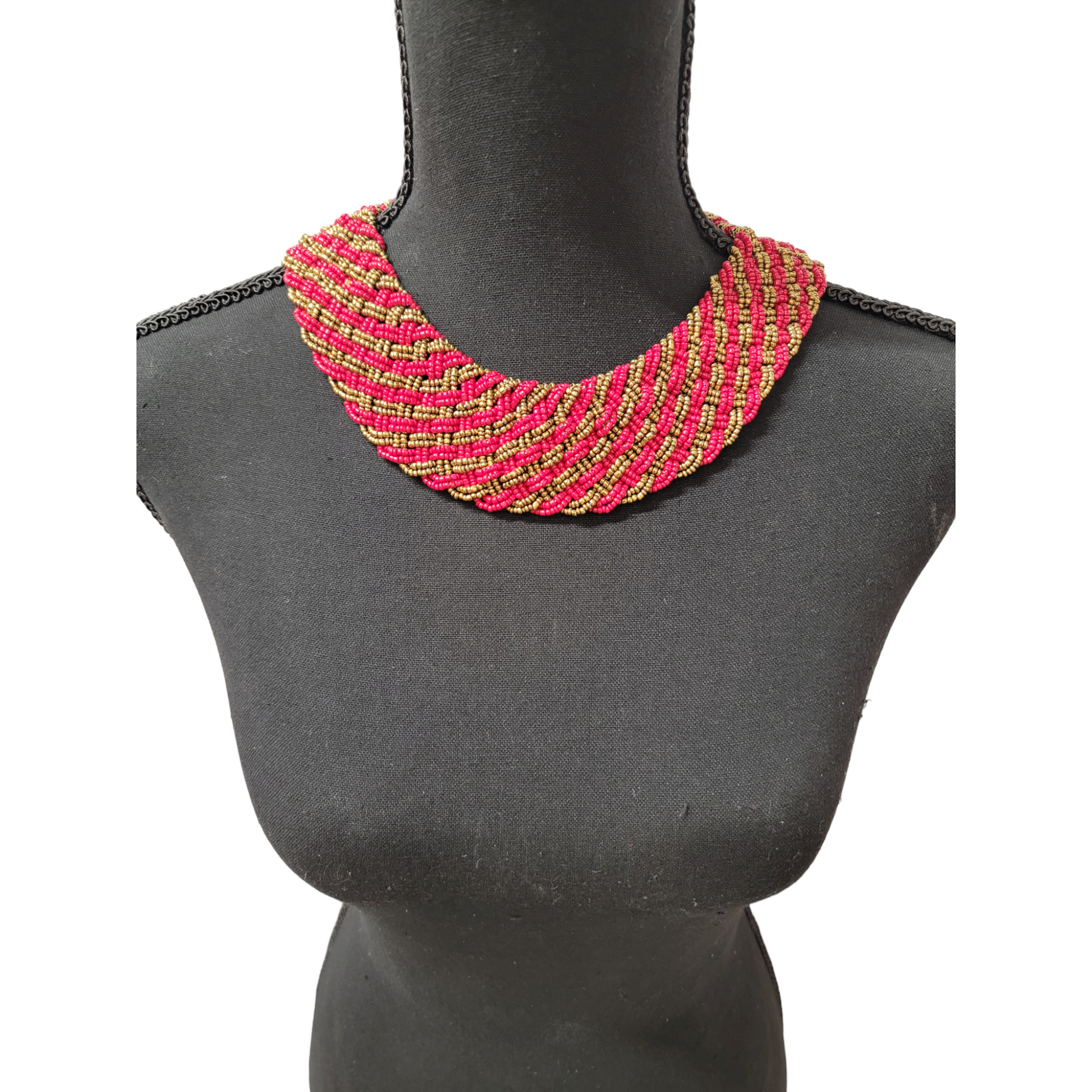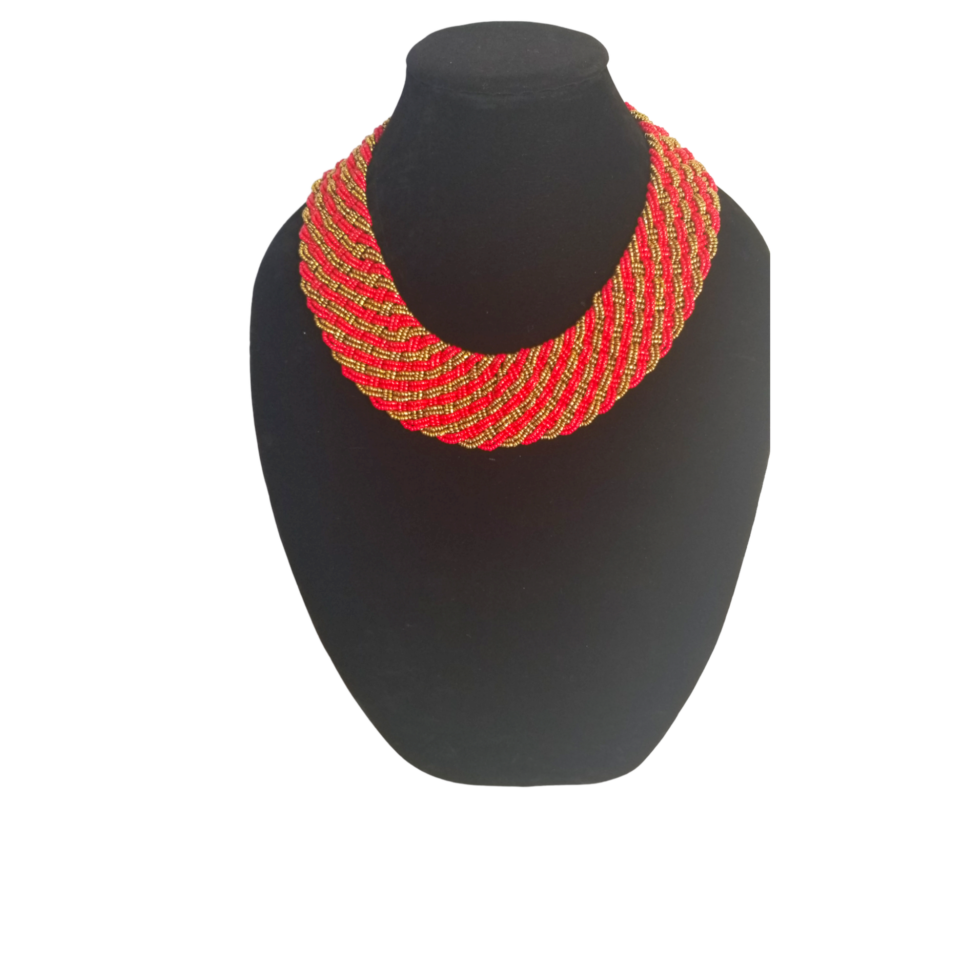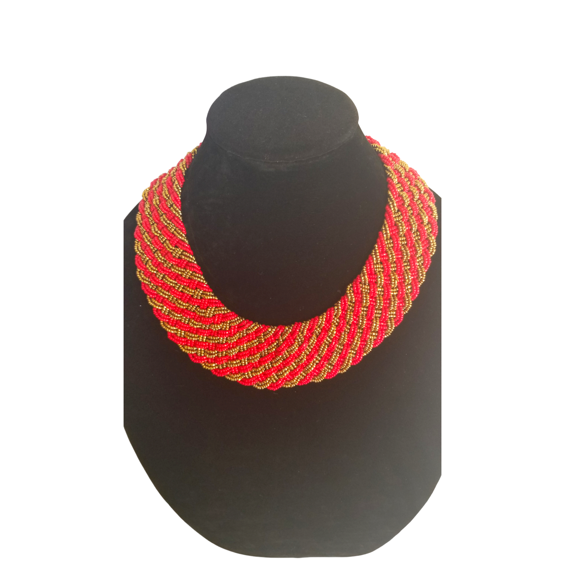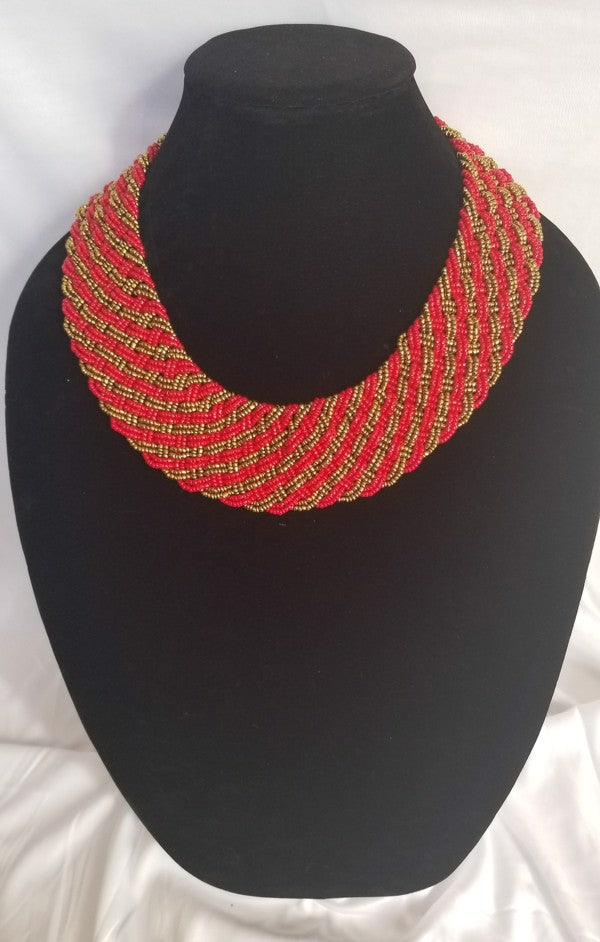 Interwoven Red & Gold Lined Bead Necklace