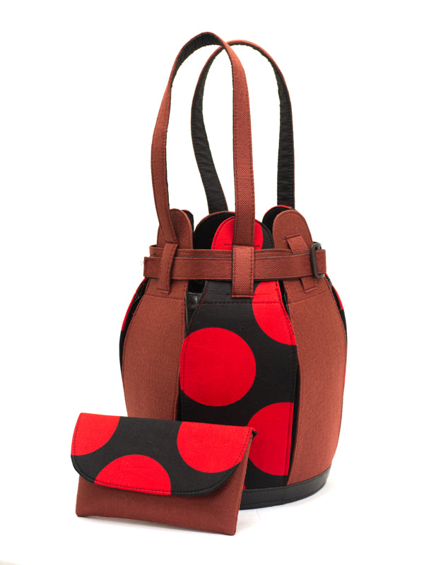 - Material: Maroon Burlap Fabric and Red & Black Kitenge Fabric