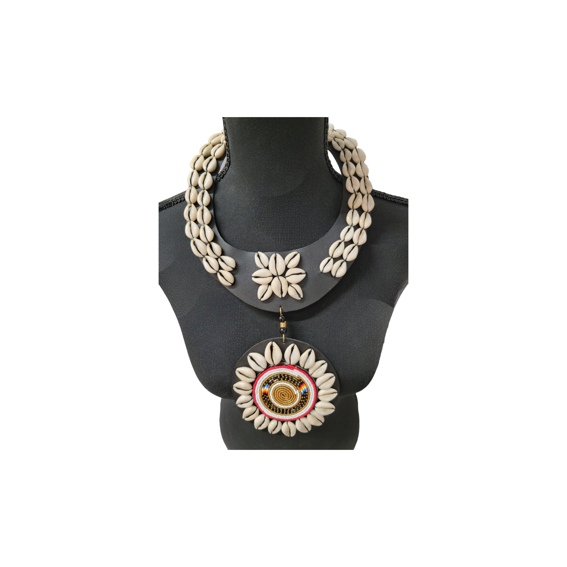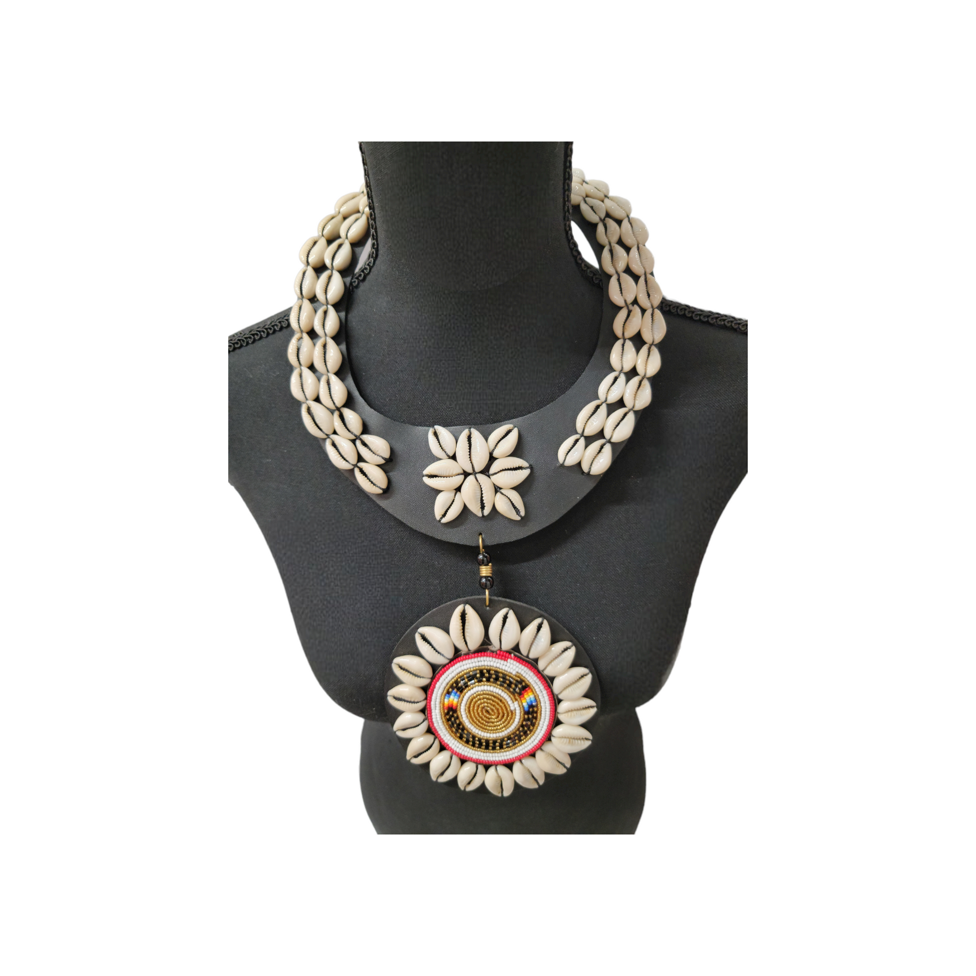 Cowrie Shell on Leather with a Pedant of Masai Beads, Cowrie Shells on Leather