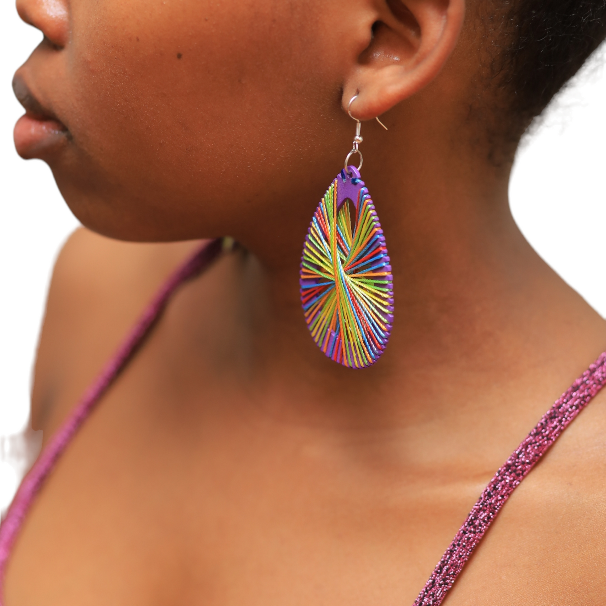 Oval Threaded Purple Earrings