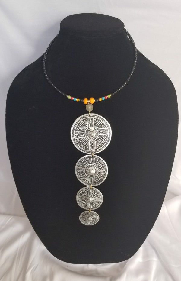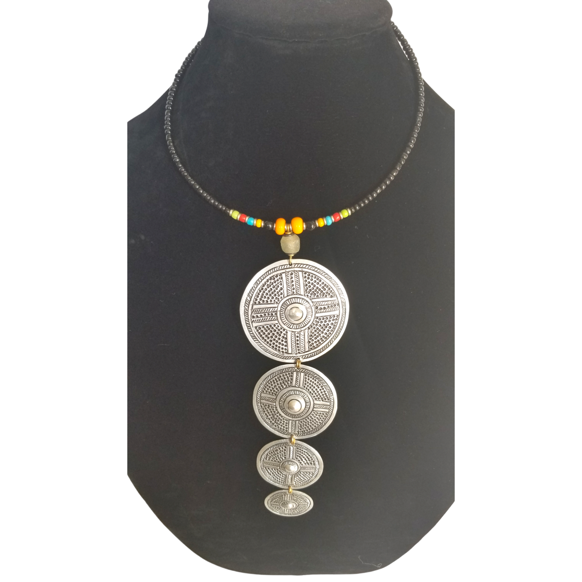 Patterned Mabati with Bone, Orange & Multi-colored Beads