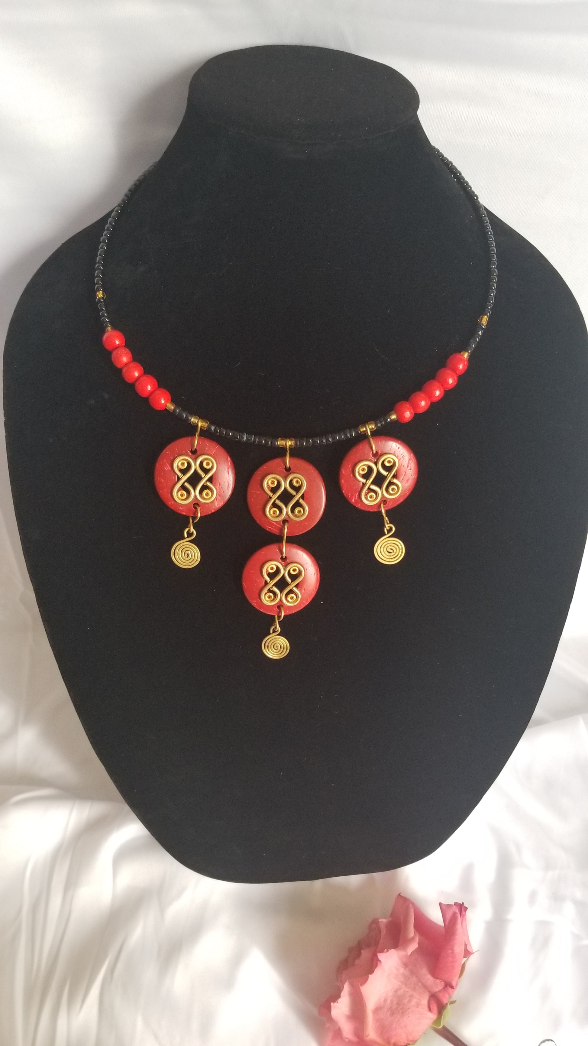 Red Coconut with Brass necklace