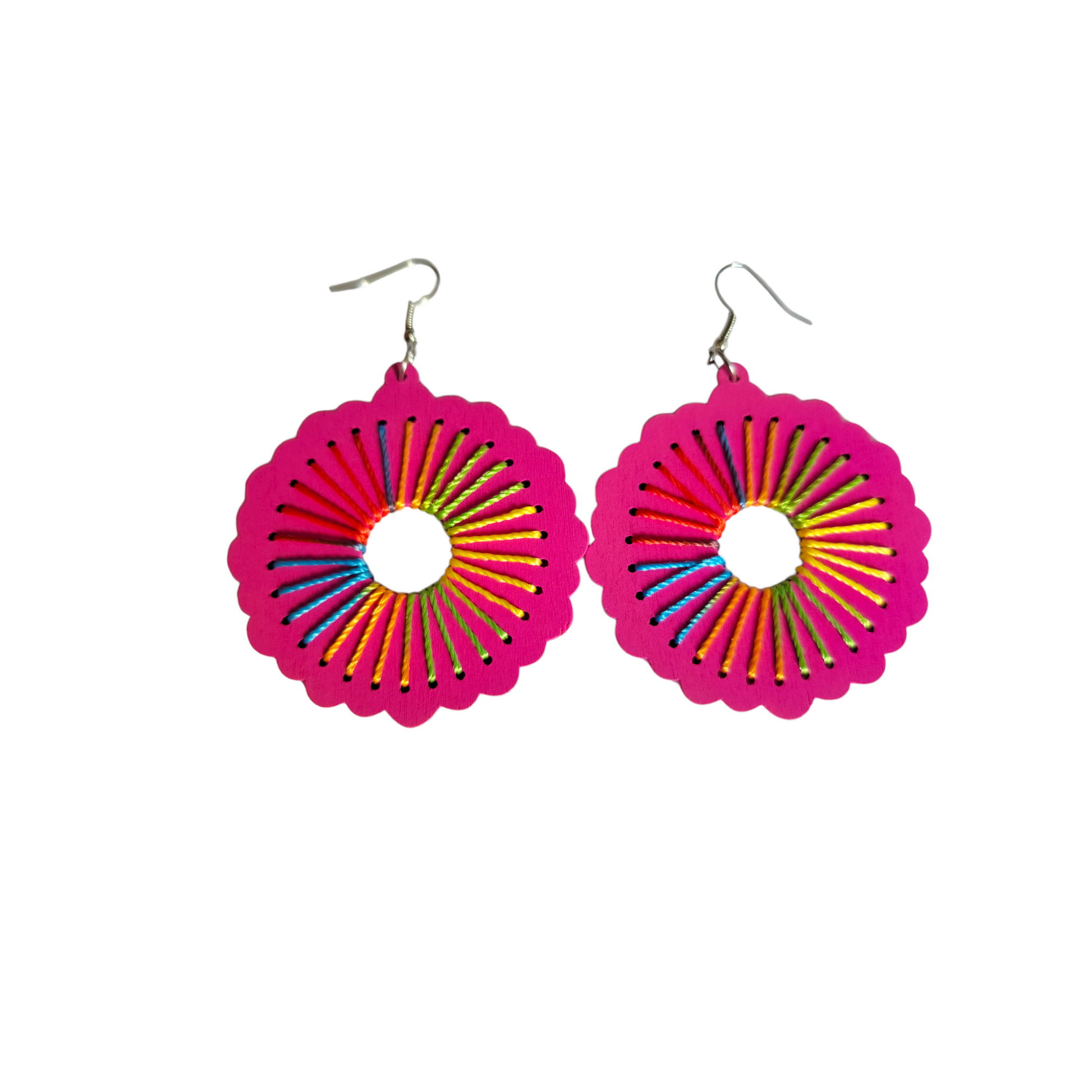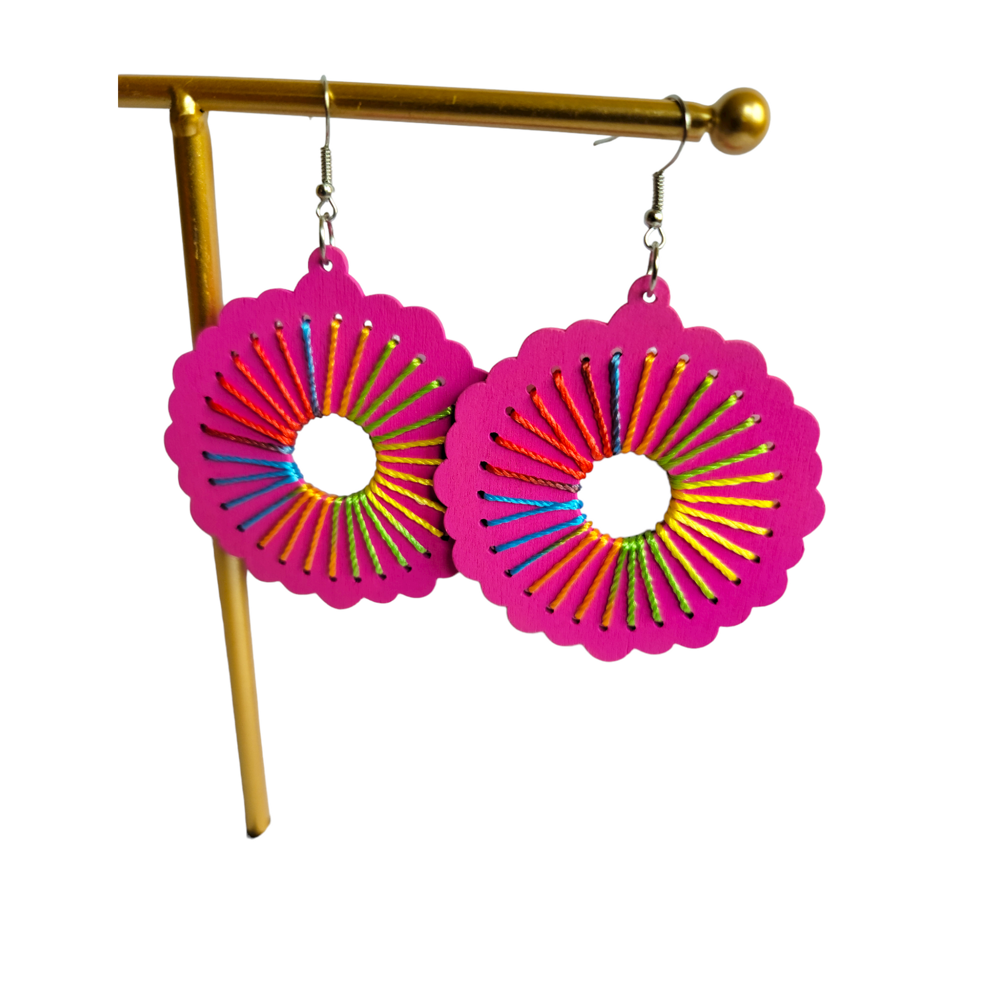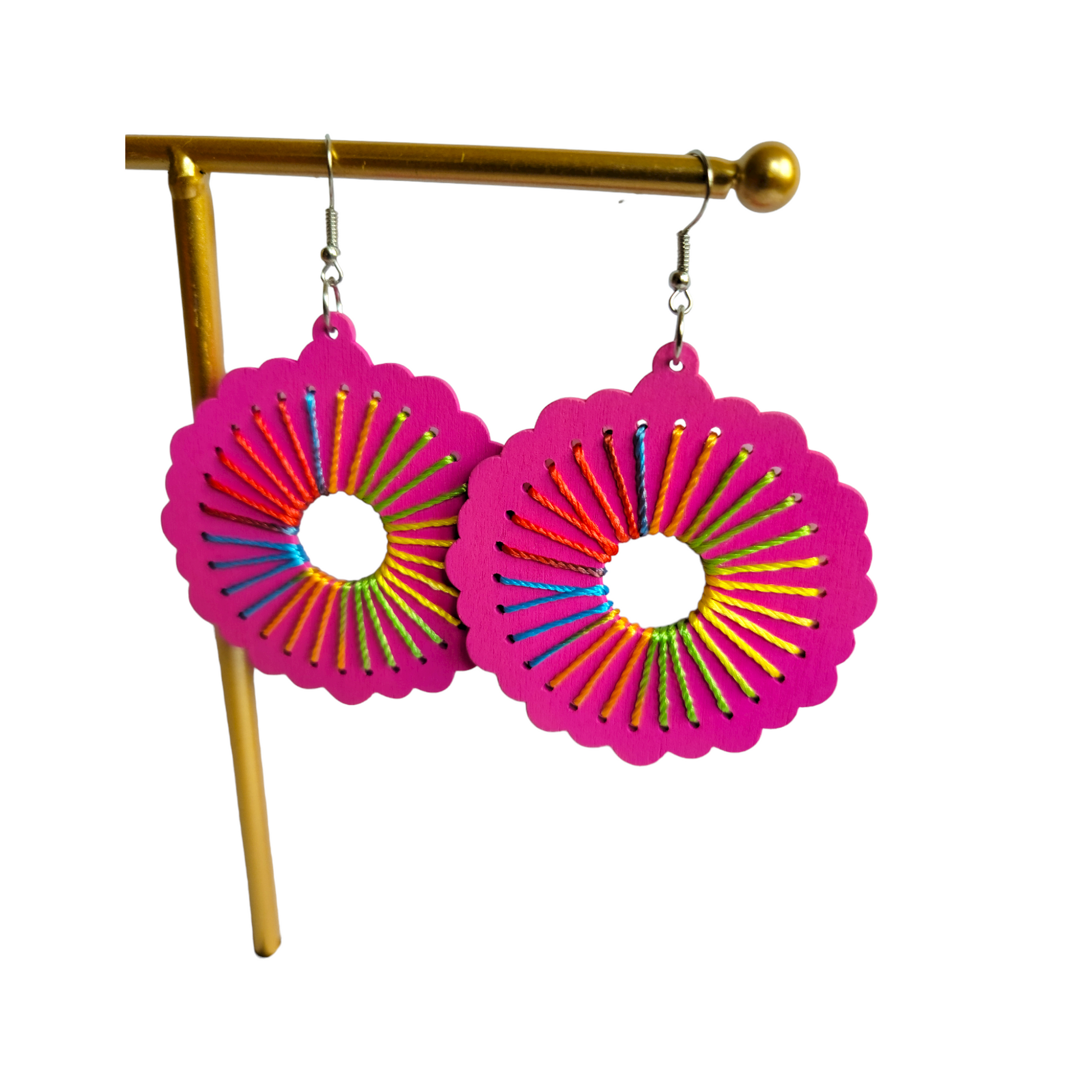 Round Pink Threaded Earrings