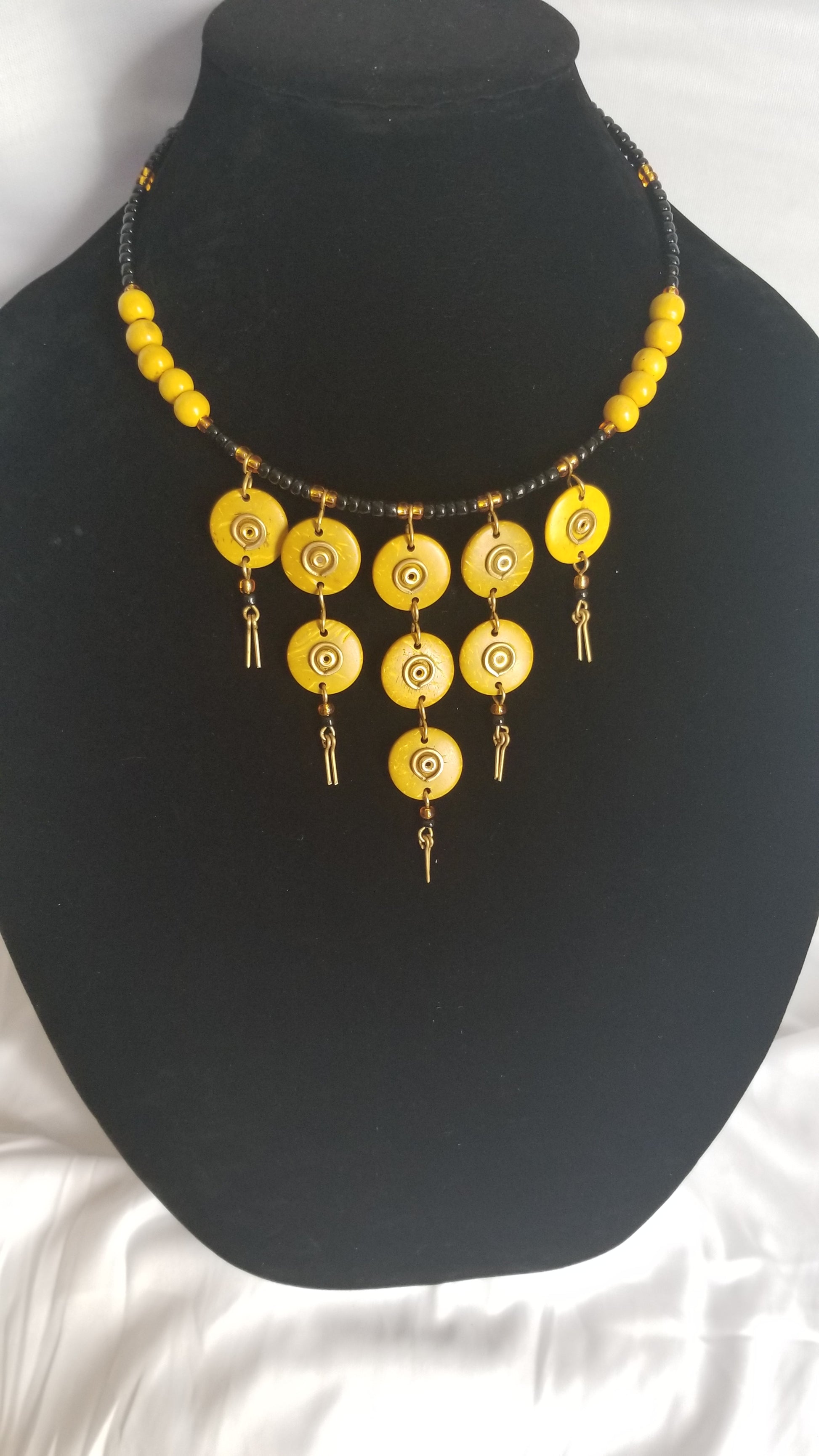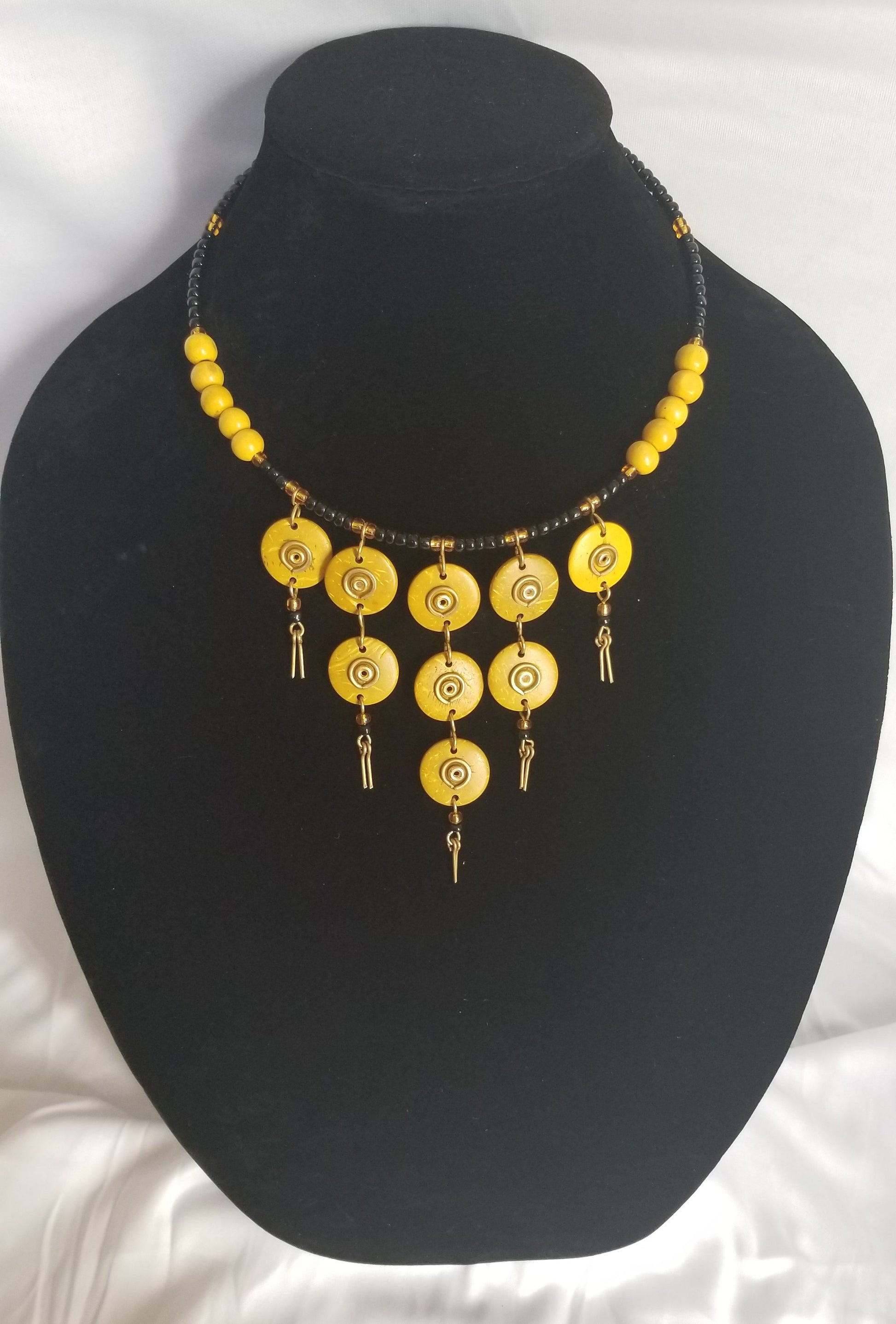 Small Yellow Coconut necklace with black and yellow wooden Beads