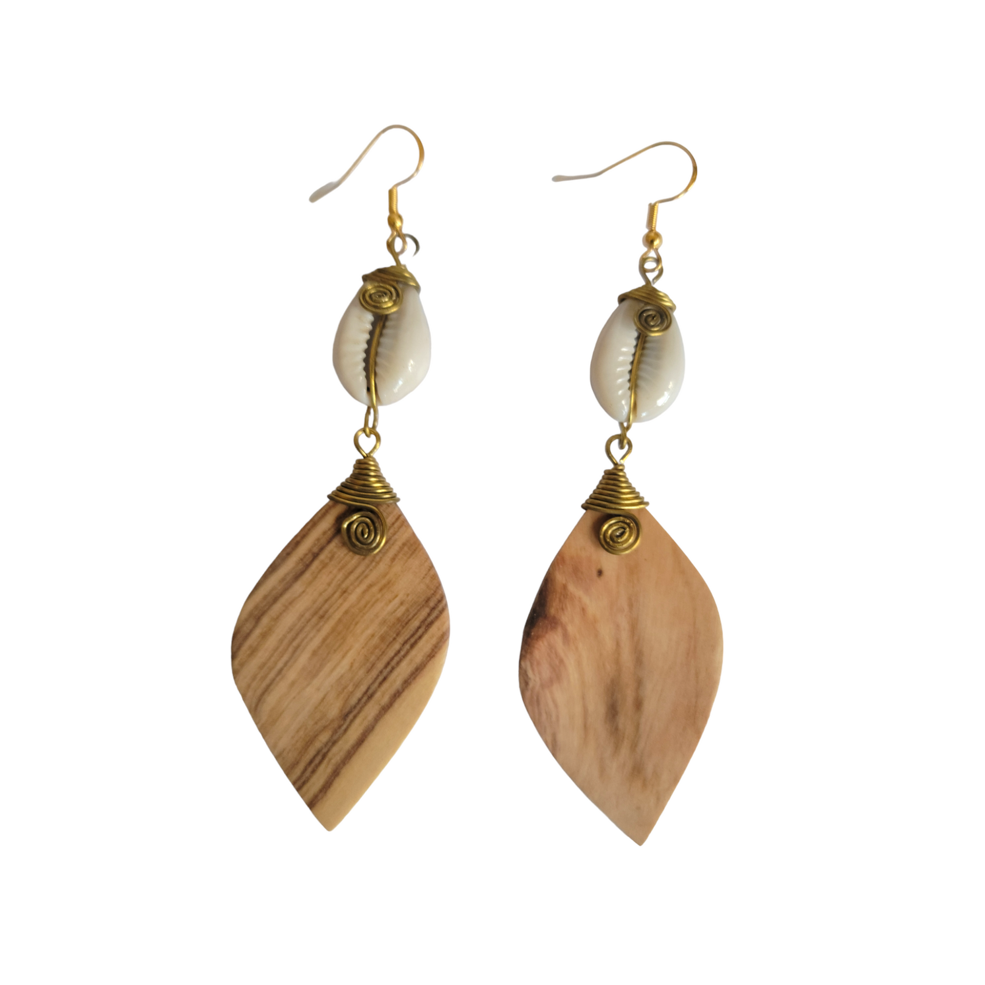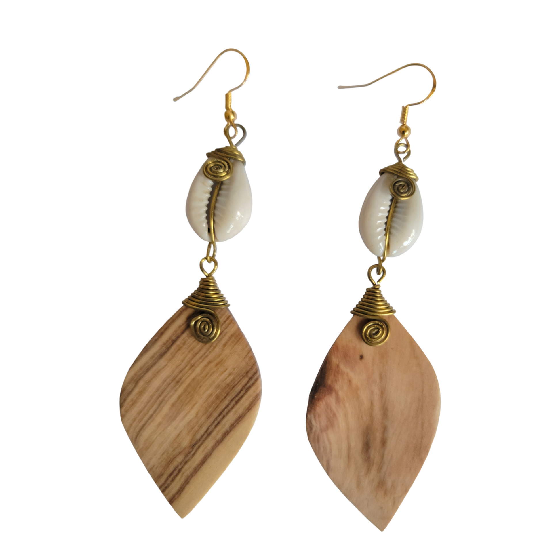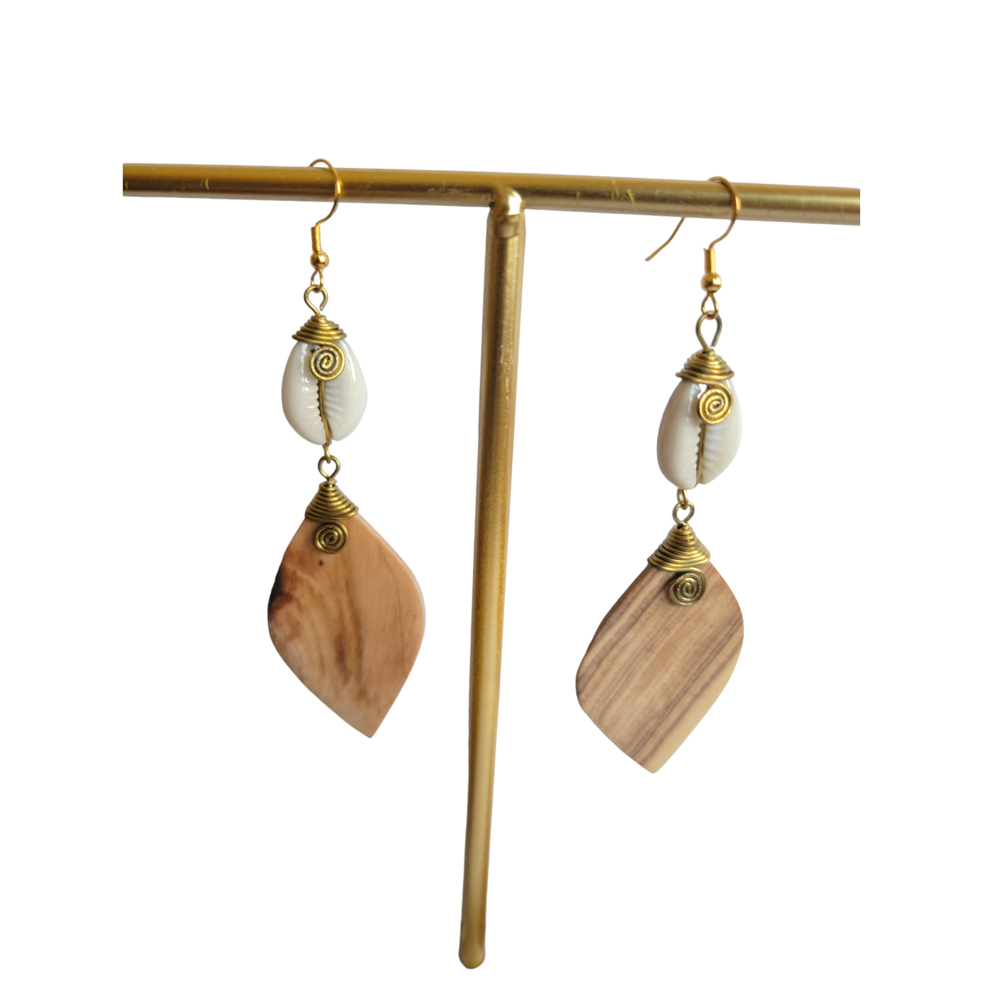 Wood & Cowrie Shells Earrings