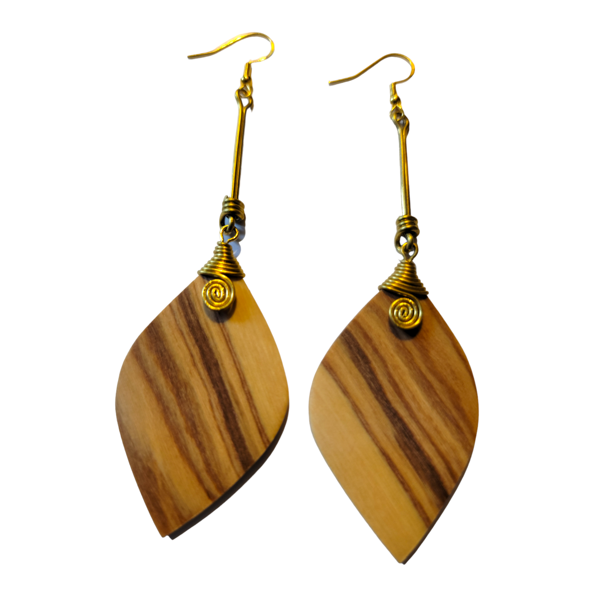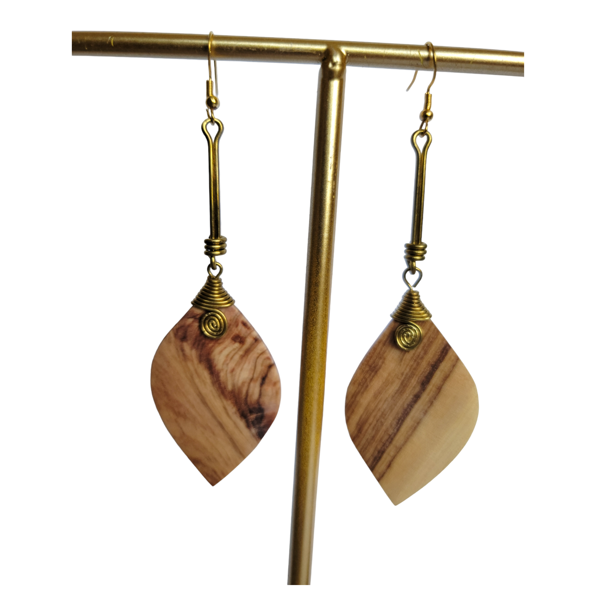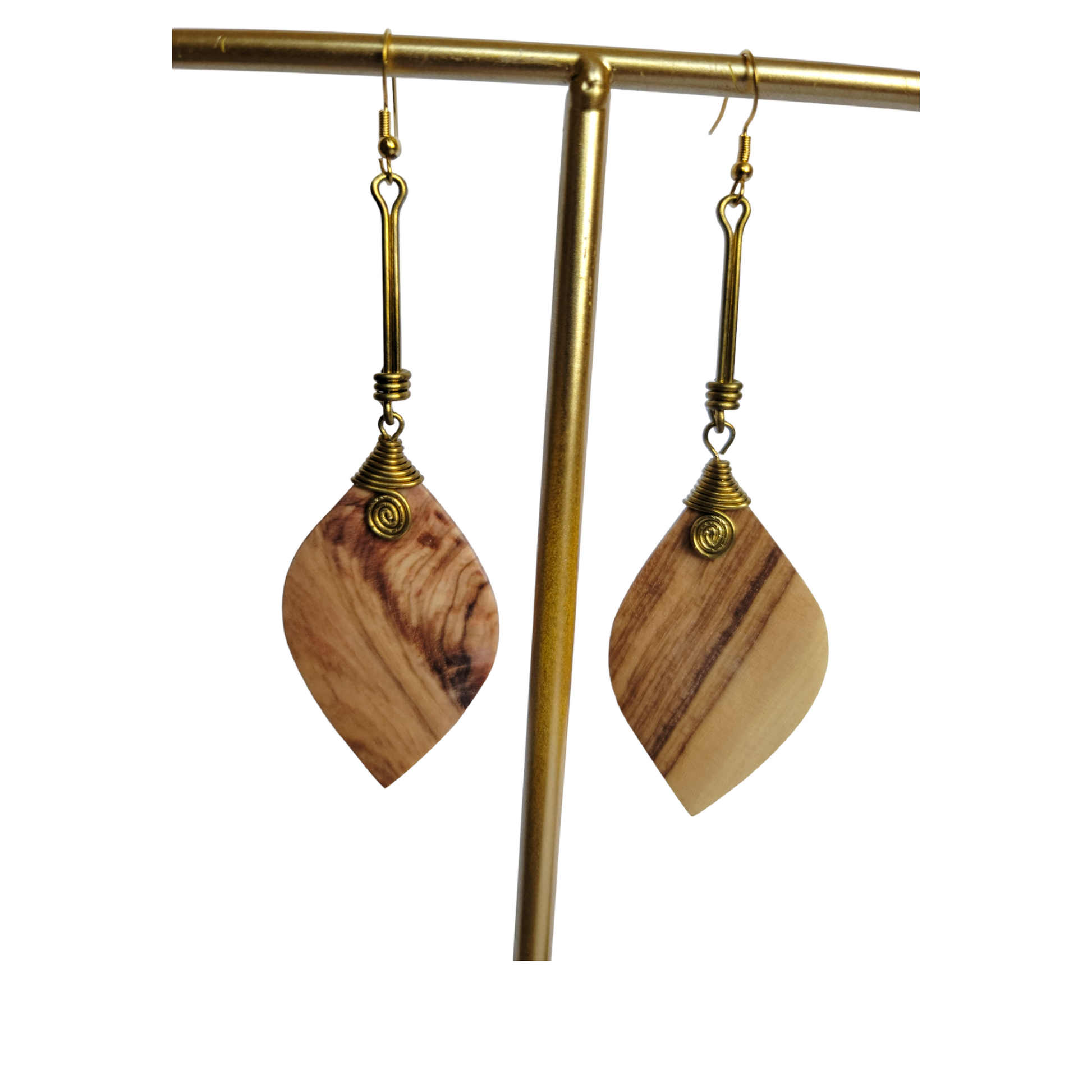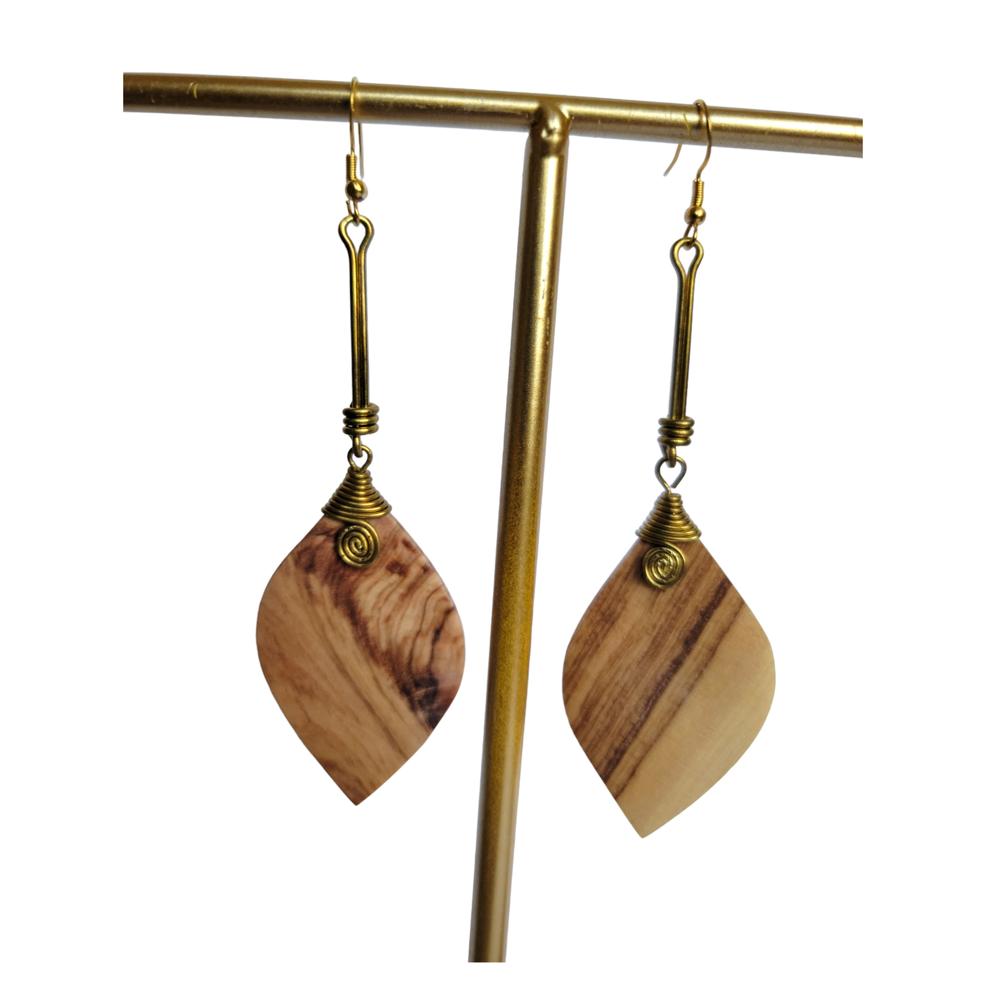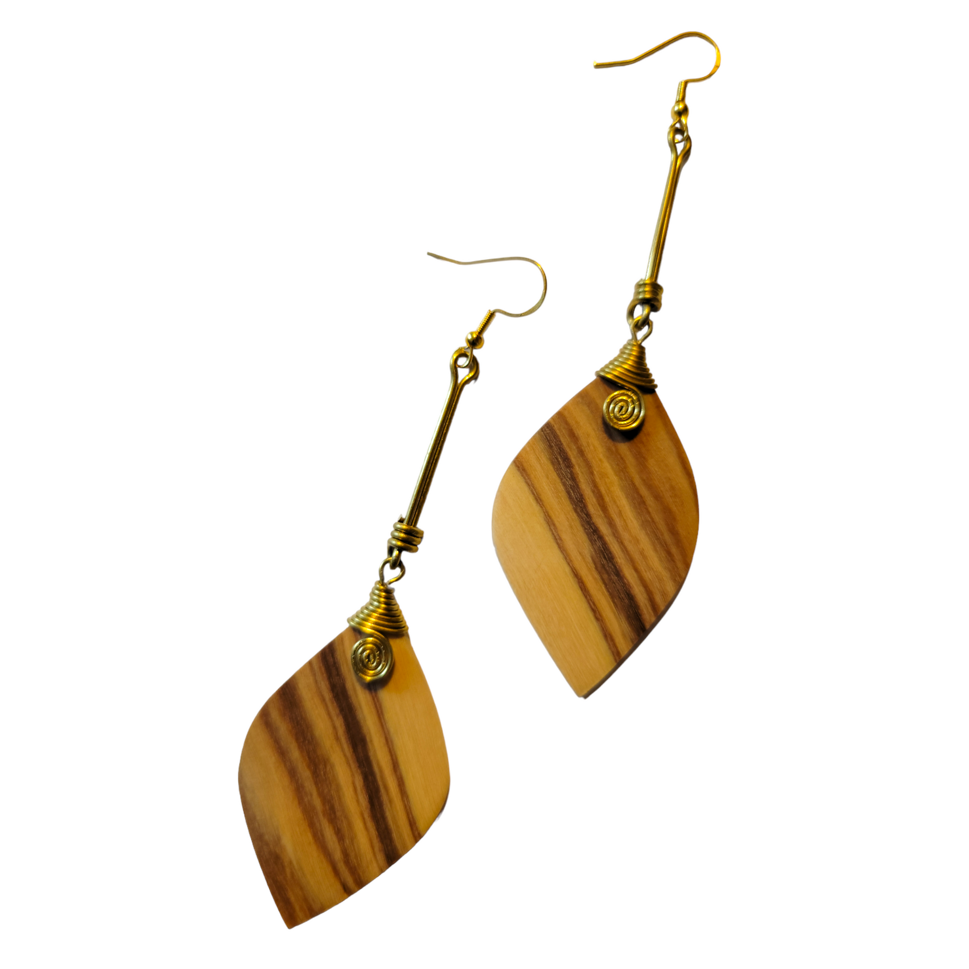 Wooden Leaf with Brass Earrings
