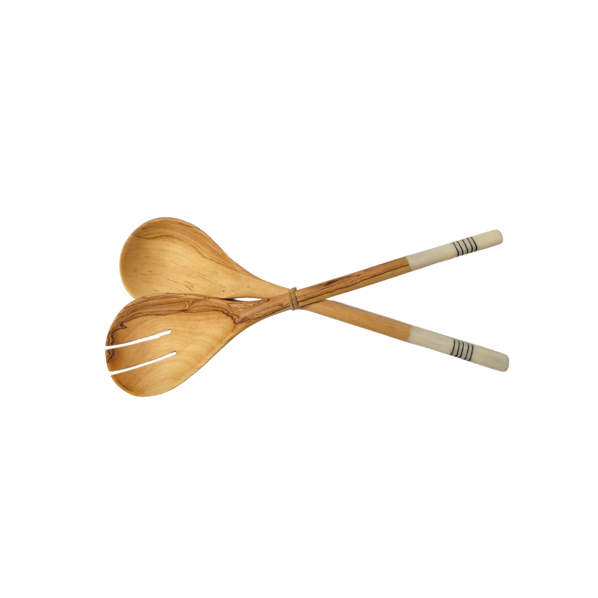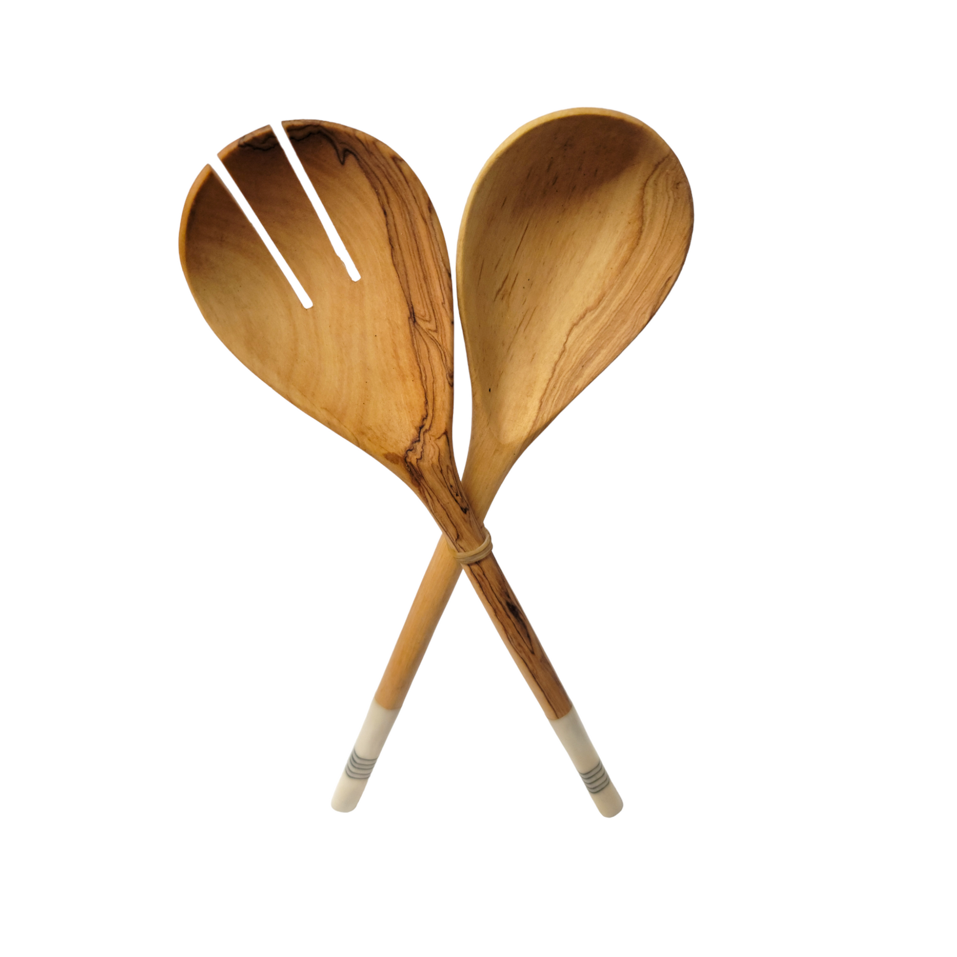 A Set of Wooden Cooking Spoons With White Cow Bone Handles