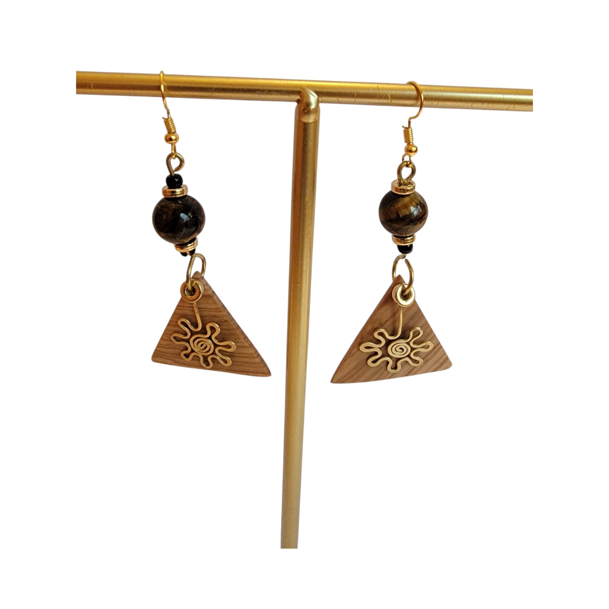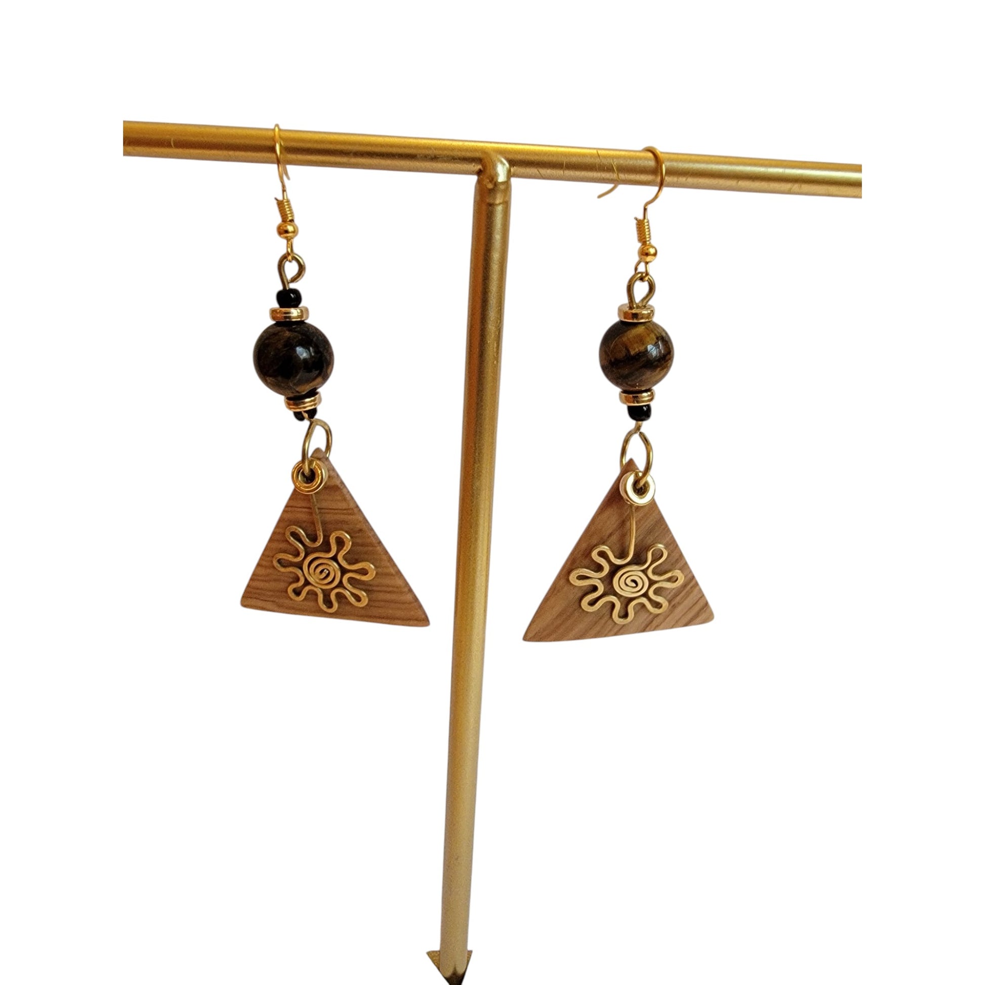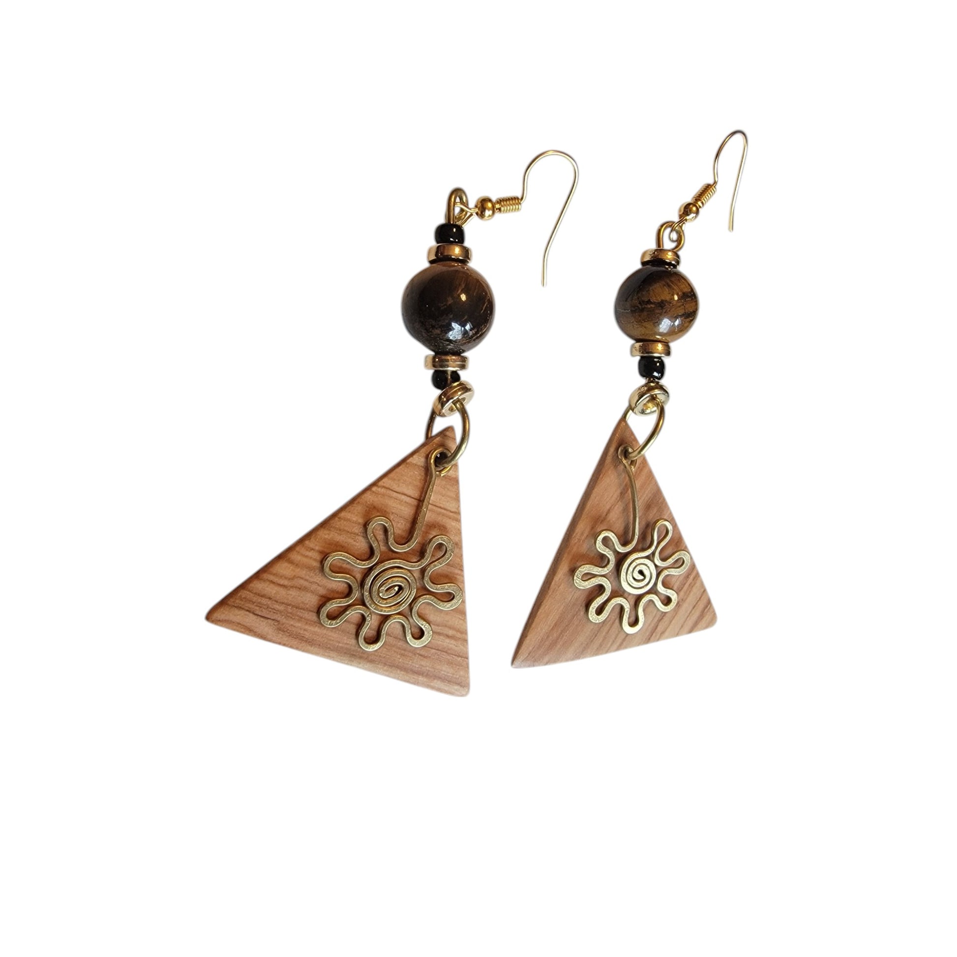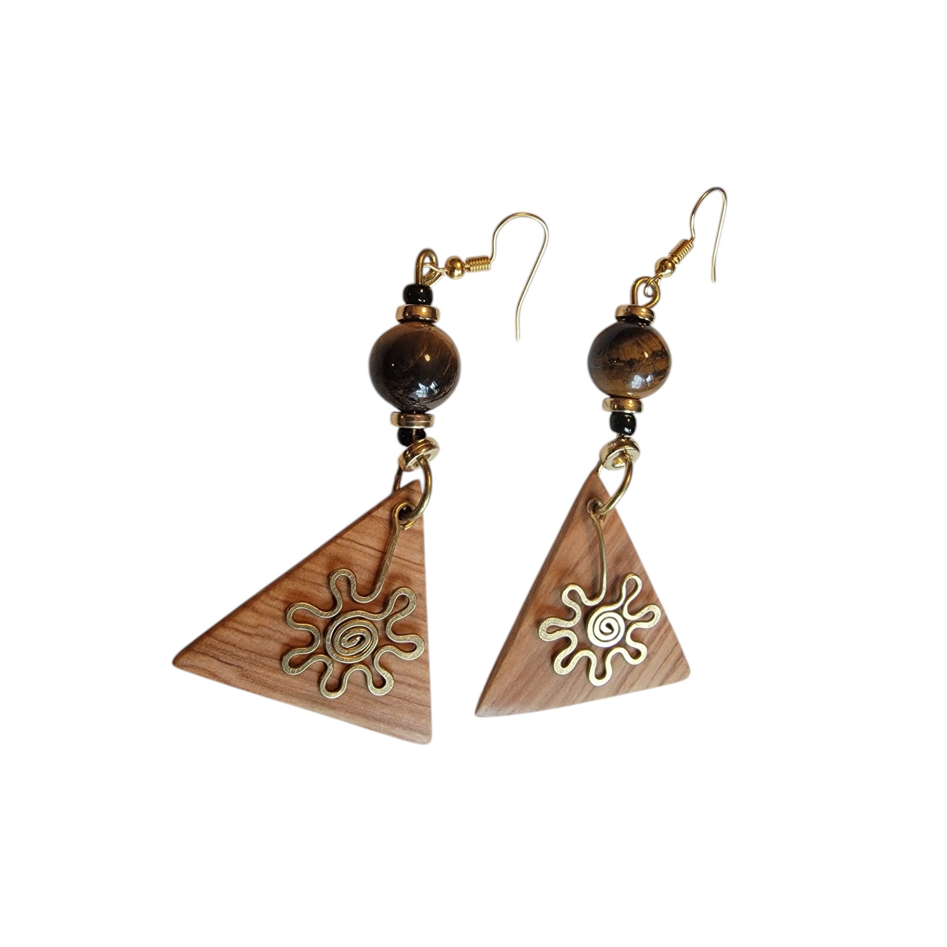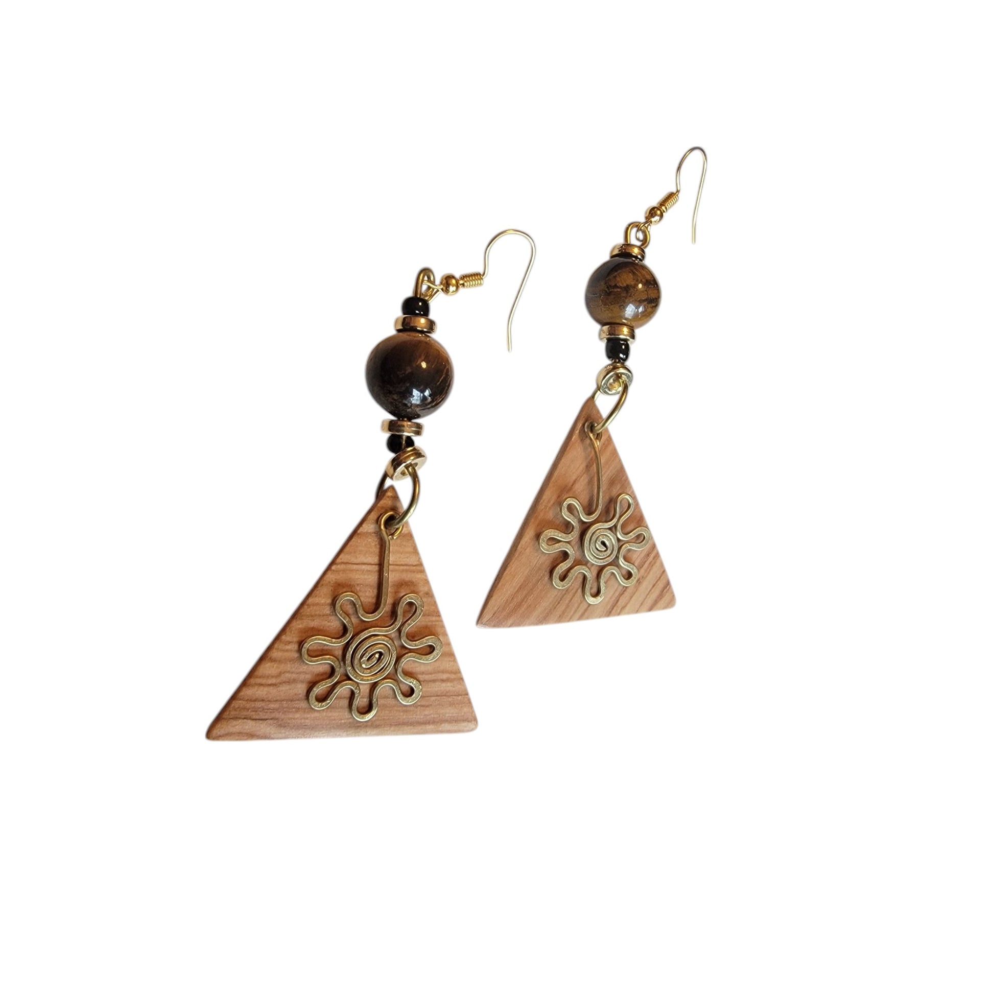 Materials: Tiger eye beads, Wooden Triaagle W/Brass